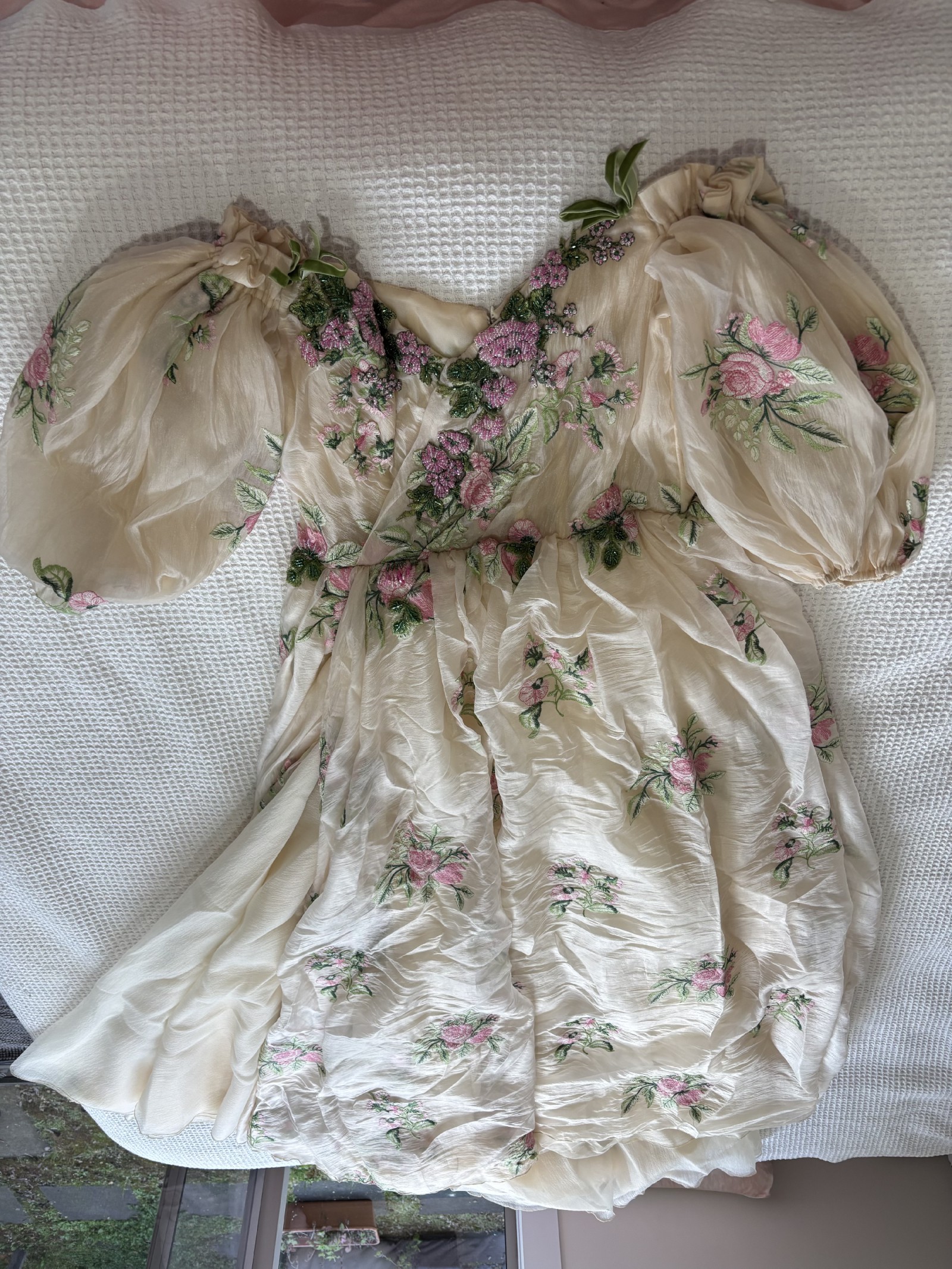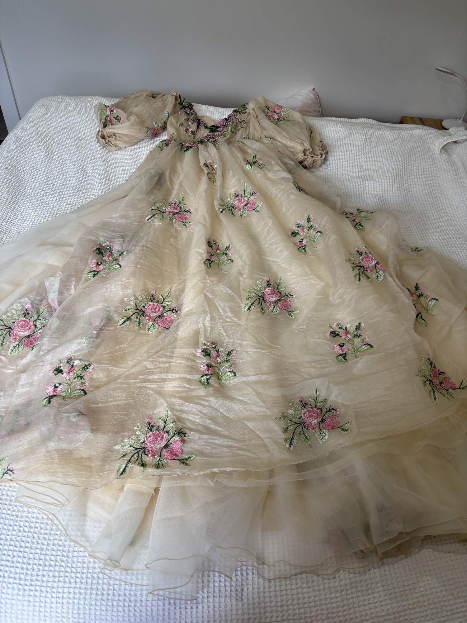 I ordered this beautiful dress from Teuta Matoshi for my 40th birthday, but alas, it was already too big by the time it arrived! The perils of successful weight loss... Anyway, it's an absolute stunner of a dress and I would love to pass it on to someone who will wear it and twirl the night away in the gorgeous full skirts. I will say, the skirts are heavier than they look in the online listing, so be prepared for the weight!