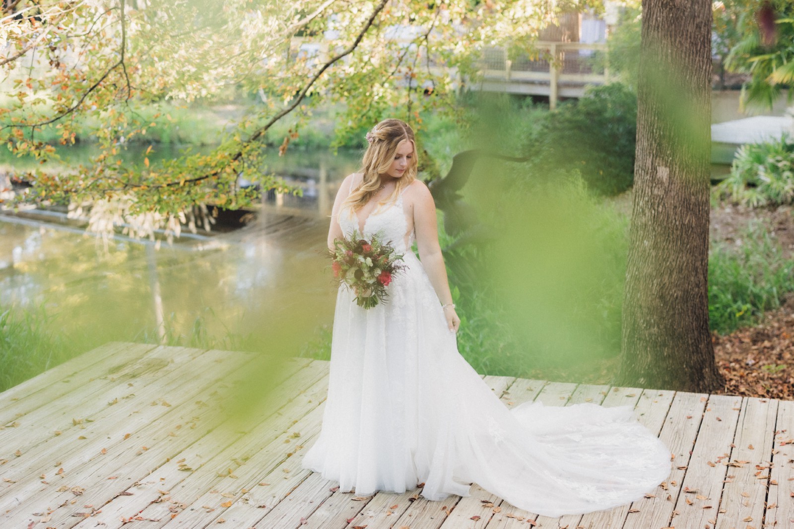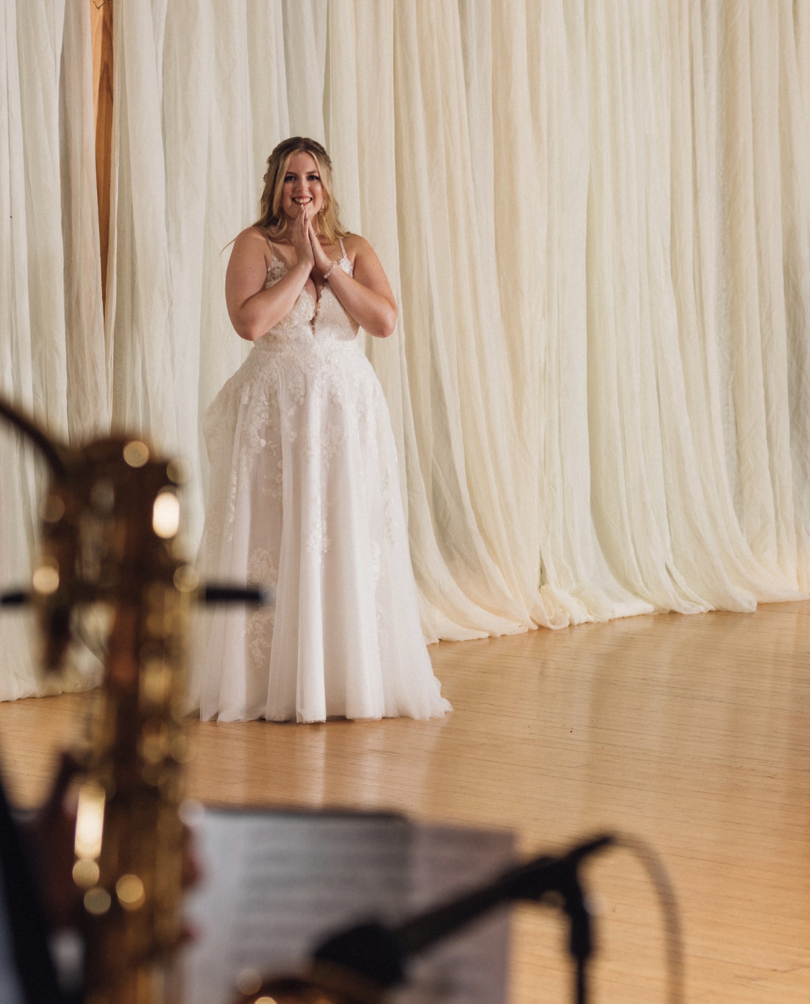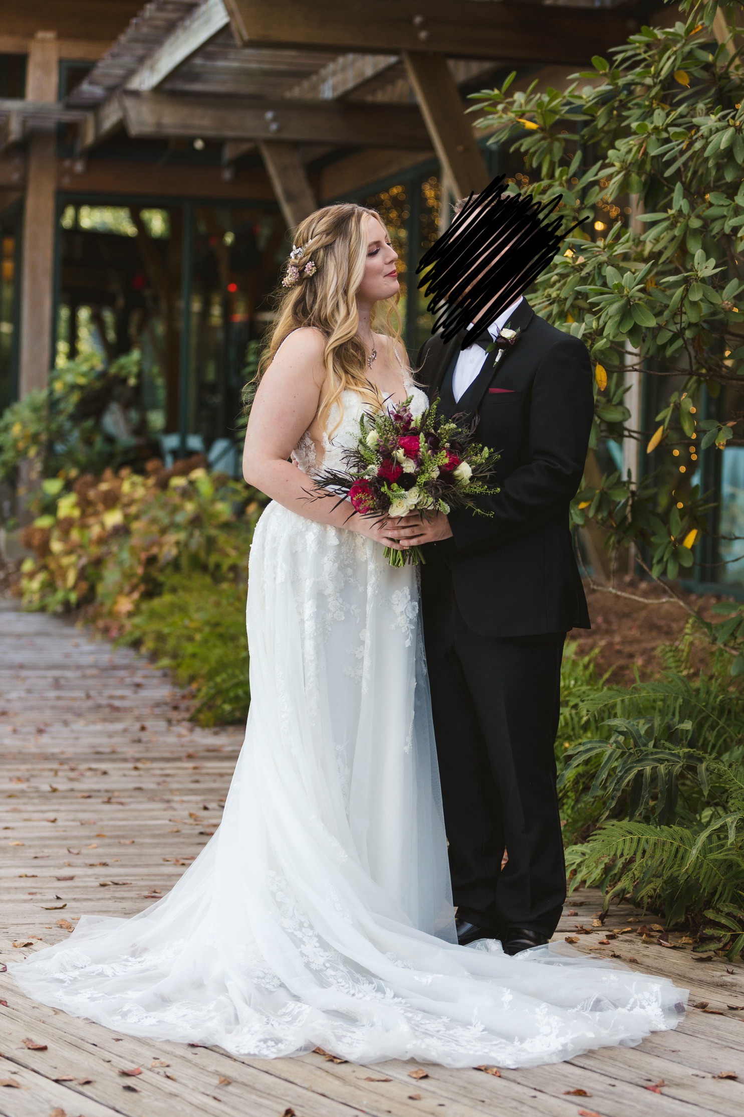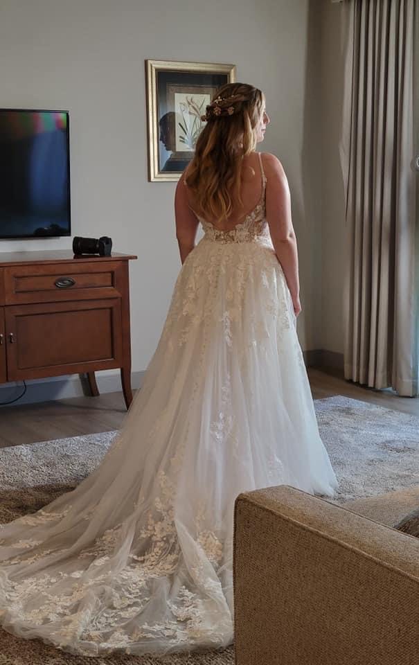 This dress was such a dream come true for me and I hope it will get to be someone else’s fairytale dress as well! It is lightly used (I changed for the reception) and dry cleaned! The bustle allows for the fullness without the inconvenience, and I was able to move freely without any hindrance!