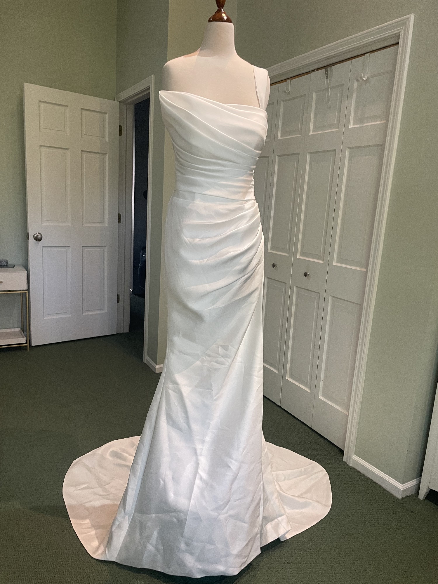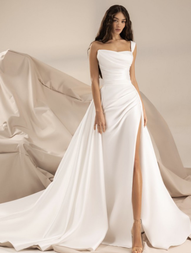 This Royal Rose wedding dress by Giovanna Alessandro is a stunning embodiment of elegance and modernity, perfect for the contemporary bride. The fit and flare silhouette beautifully accentuates your curves, creating a captivating hourglass shape that exudes confidence and femininity. With a striking one-shoulder design, the dress showcases your décolletage while maintaining an air of sophistication.