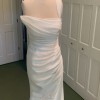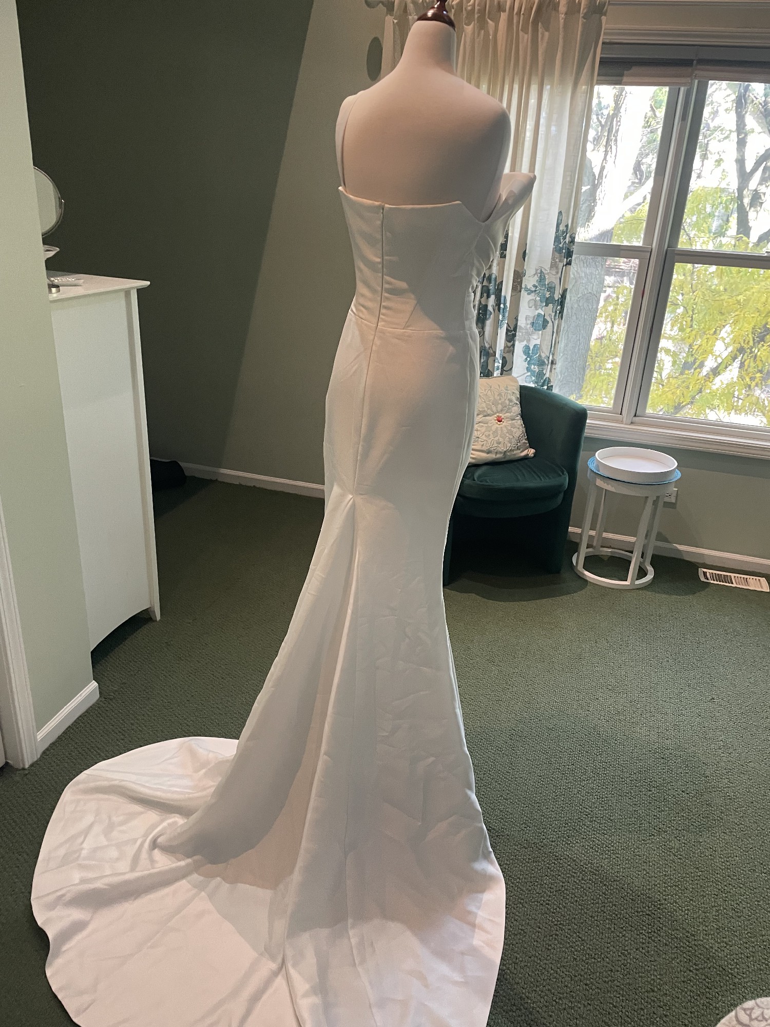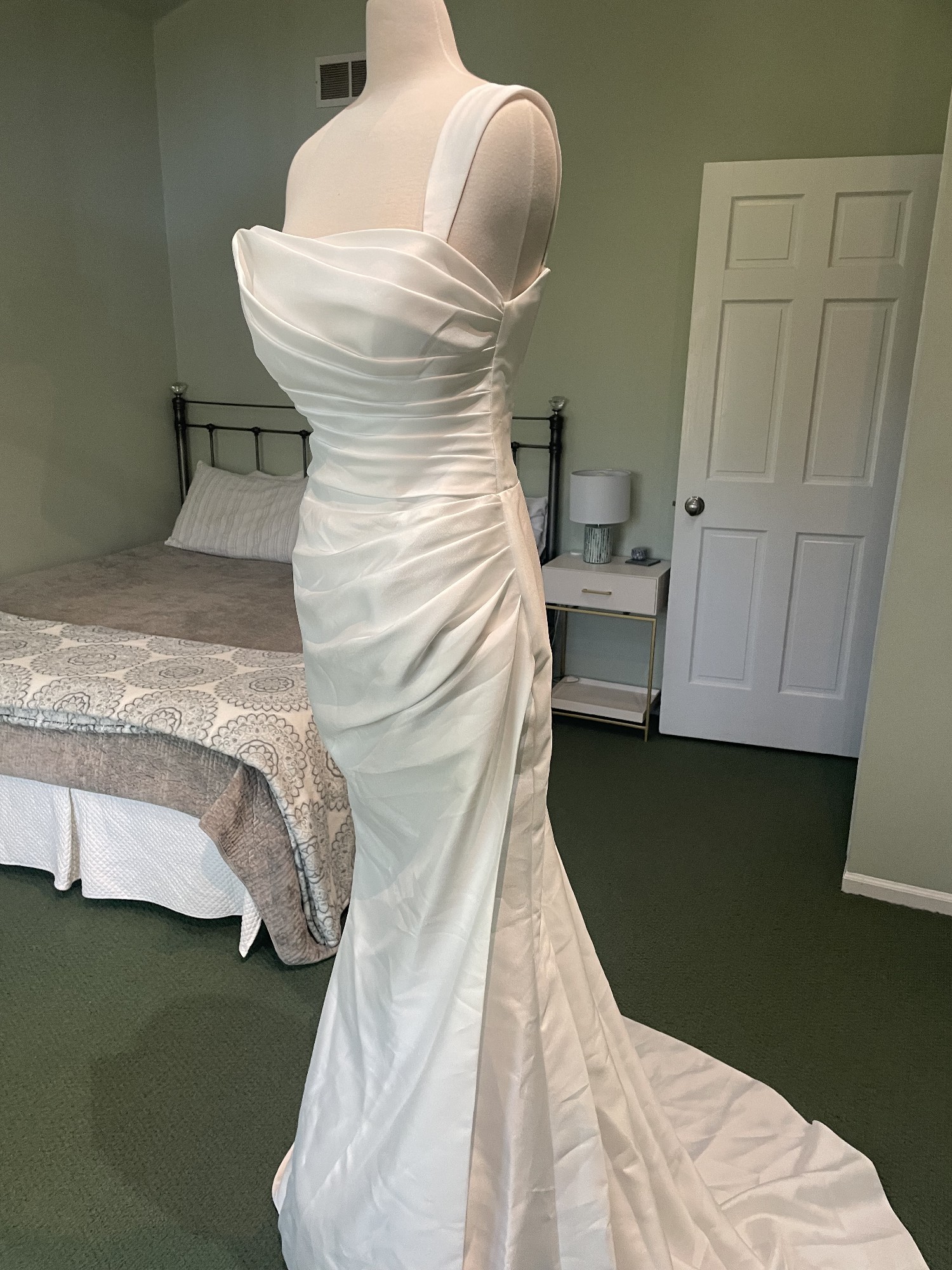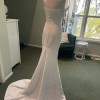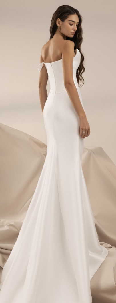 Crafted from luxurious taffeta, the fabric catches the light in all the right ways, giving it a radiant shimmer as you glide down the aisle. The floor-length length ensures a dramatic entrance, while the high slit adds a daring touch, allowing for effortless movement and a hint of allure. The mid-back design completes the look, offering the perfect balance of coverage and style.