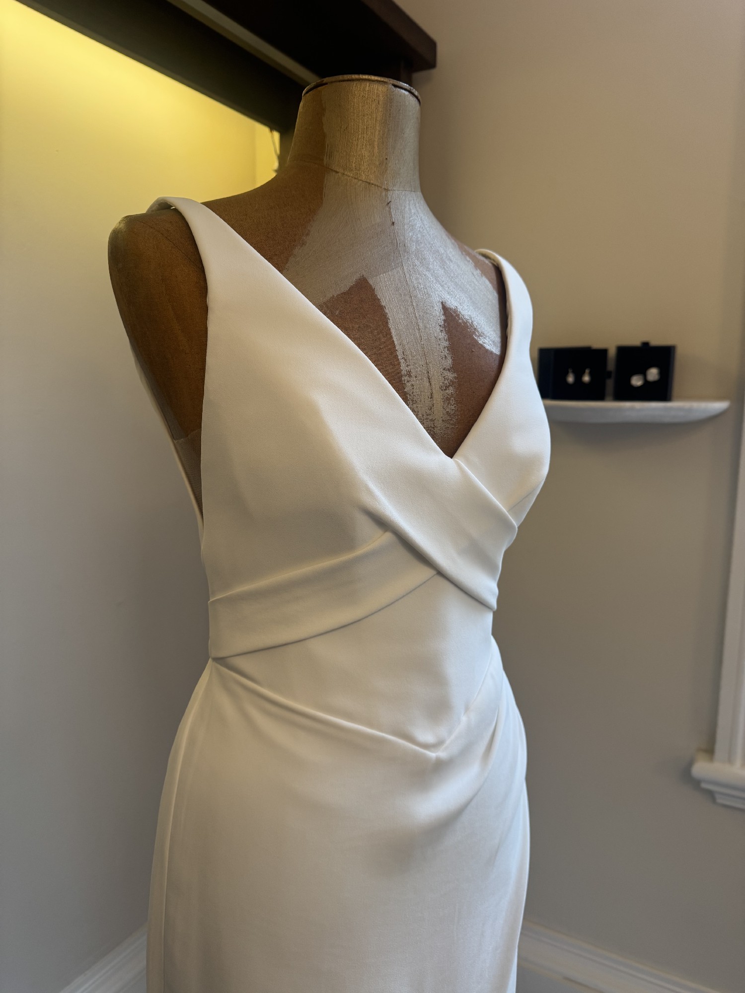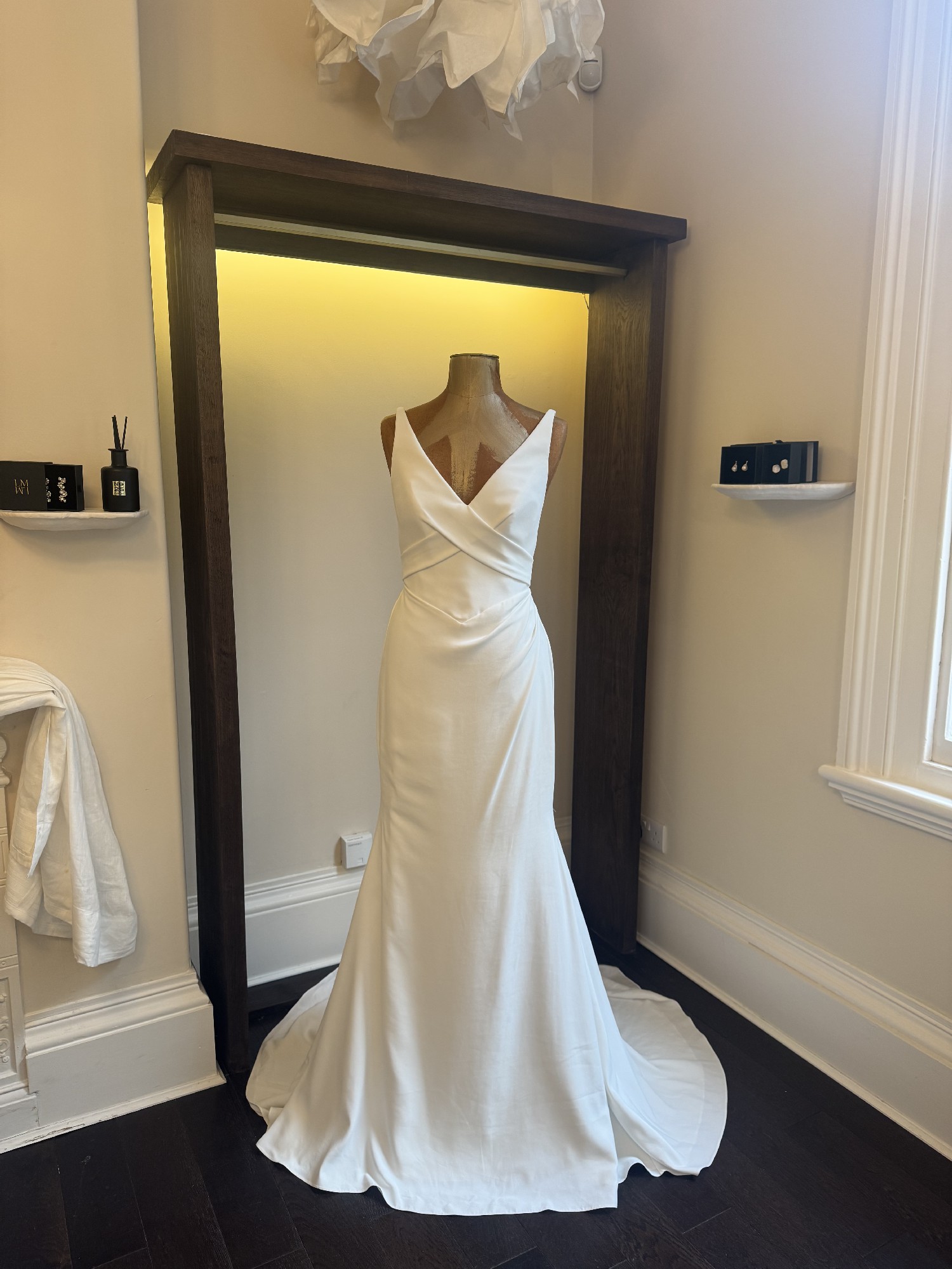 At the time of posting, there are no obvious blemishes, marks or stains however please be aware that this is a showroom sample. We take great pride in caring for our gowns but they are subject to light wear that you would expect from a showroom environment. Professional dry cleaning available on request.
