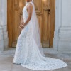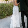 Crafted from delicate lace with crystal and pearl detailing, the dress subtly catches the light as you walk and dance. The floor-length skirt flows beautifully, creating a soft, dramatic effect down the aisle and on the dance floor. I wore this gown for the most magical moments of my life, and I’d love for someone else to feel just as special in it.