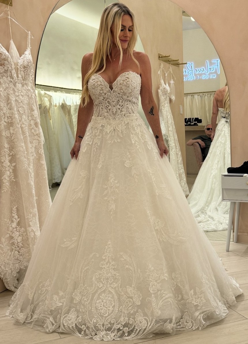 This exquisite Rosalinda ST2214 wedding dress by the renowned designer Sophia Tolli is a true reflection of elegance and romance. The enchanting ballgown silhouette is designed to flatter your figure while offering a fairytale charm that every bride dreams of. Featuring a delicate sweetheart neckline, the strapless design accentuates your décolletage, exuding timeless beauty on your special day.