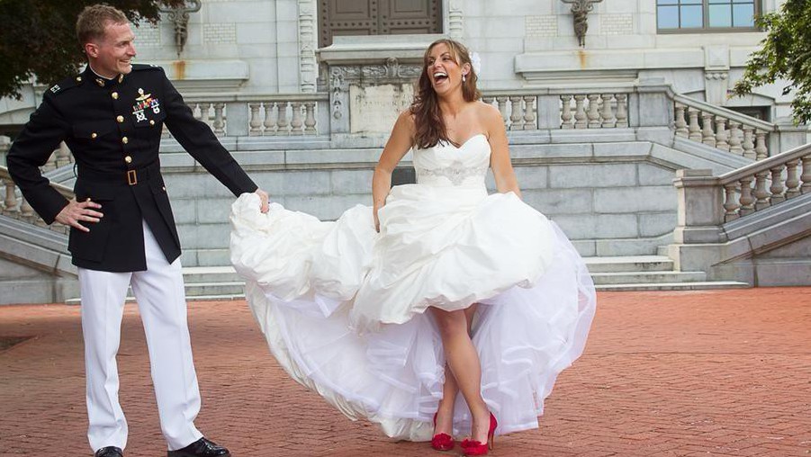 The gown is a label size 10 and a true bridal white. It creates a lovely defined waist and a clean, classic bridal shape without feeling heavy or stiff. This dress has so much joyful movement—perfect for a bride who wants something traditional yet full of personality.