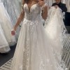 This exquisite Ines Di Santo wedding dress is the perfect embodiment of romance and elegance. Featuring a breathtaking sweetheart neckline and intricate long sleeves, it gracefully highlights the shoulders while offering delicate coverage. The sheer back adds a stunning touch, allowing for a captivating reveal as you walk down the aisle.