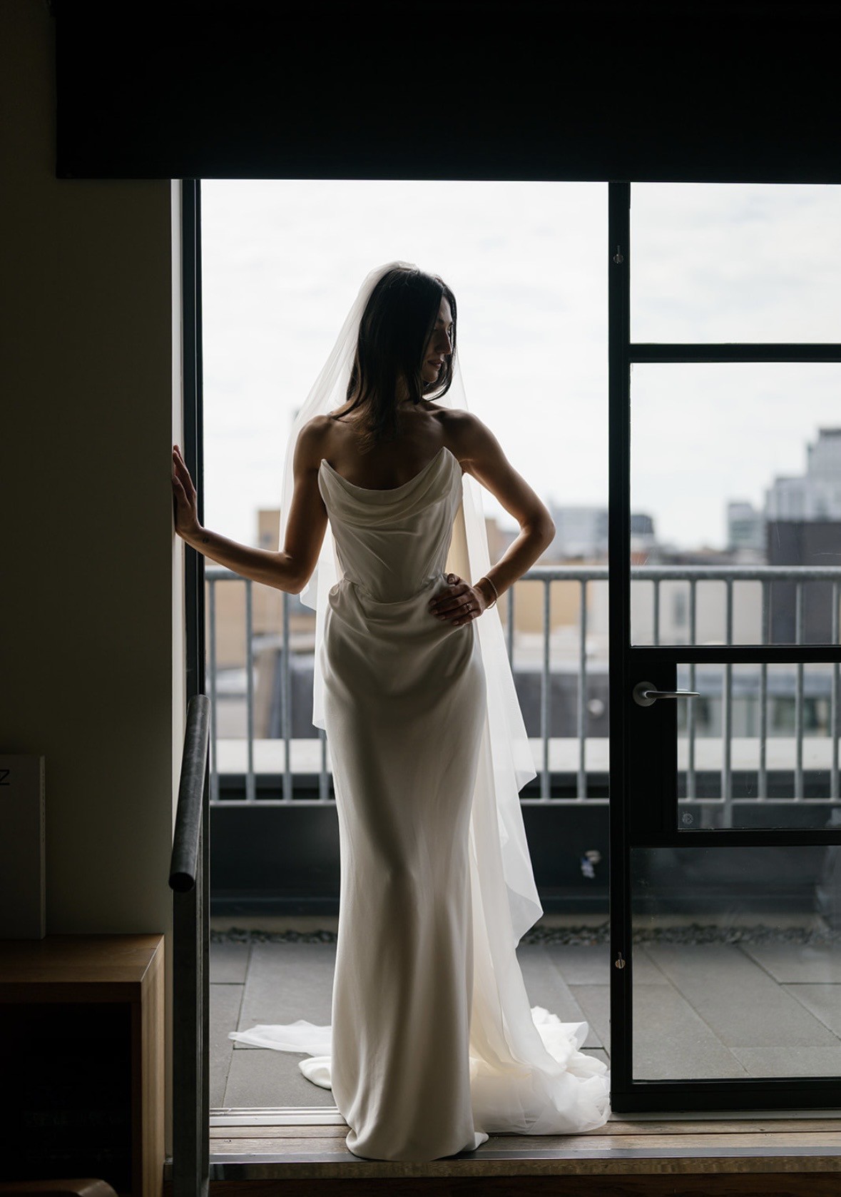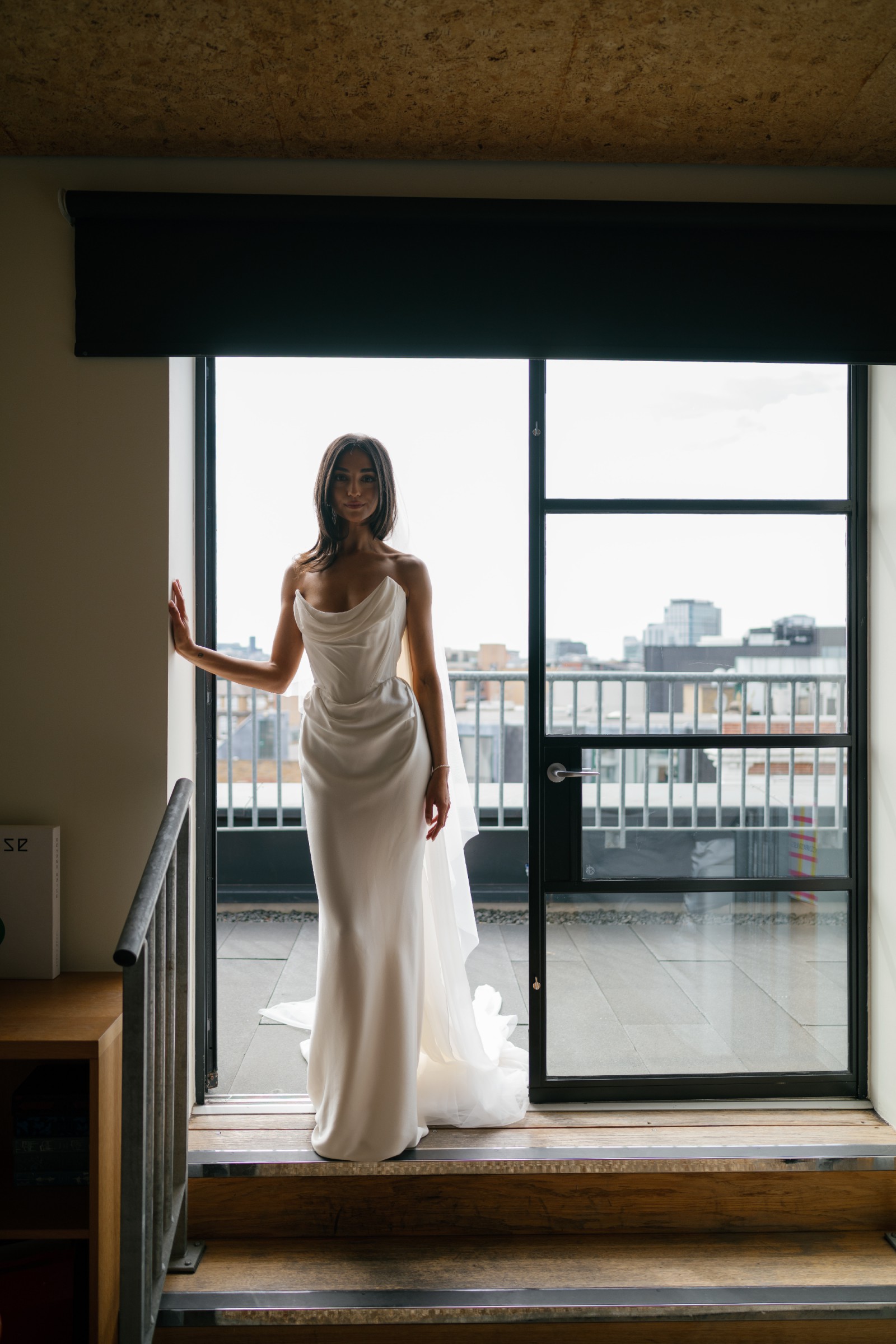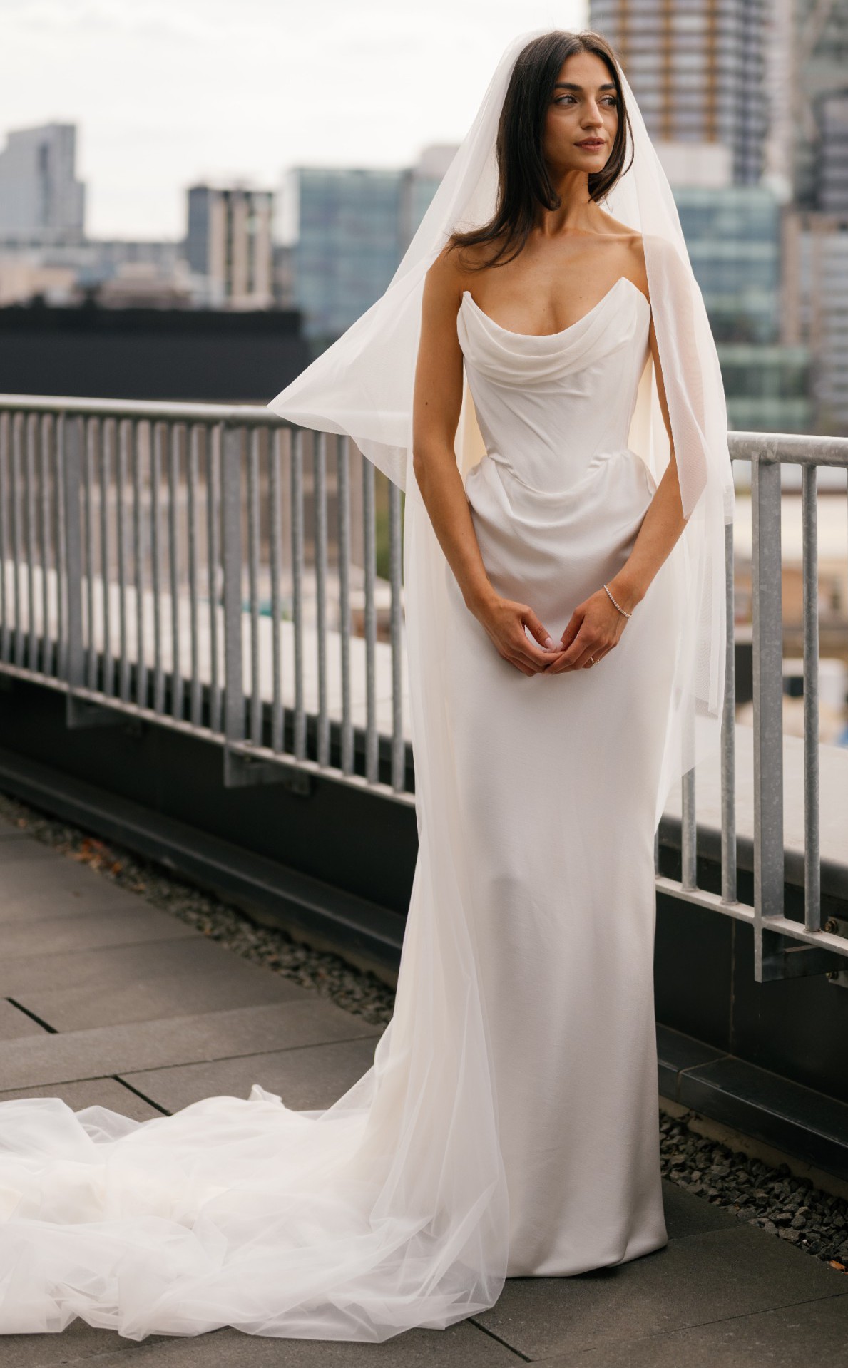 The fit and style are incredible, the corsetry is stunning, it stops just above the stomach making it very comfortable. The back has a beautiful subtle train. Dress comes with detachable cape, I took this off for the reception, so regrettably don't have may pictures with the cape attached!