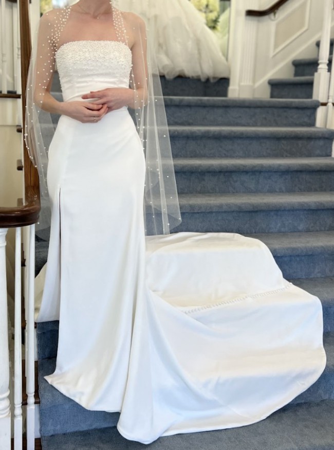 Purchased new, never worn and never altered. Veil optionally included for an additional $150 (original retail price: $300; style: Bel Aire V2278).