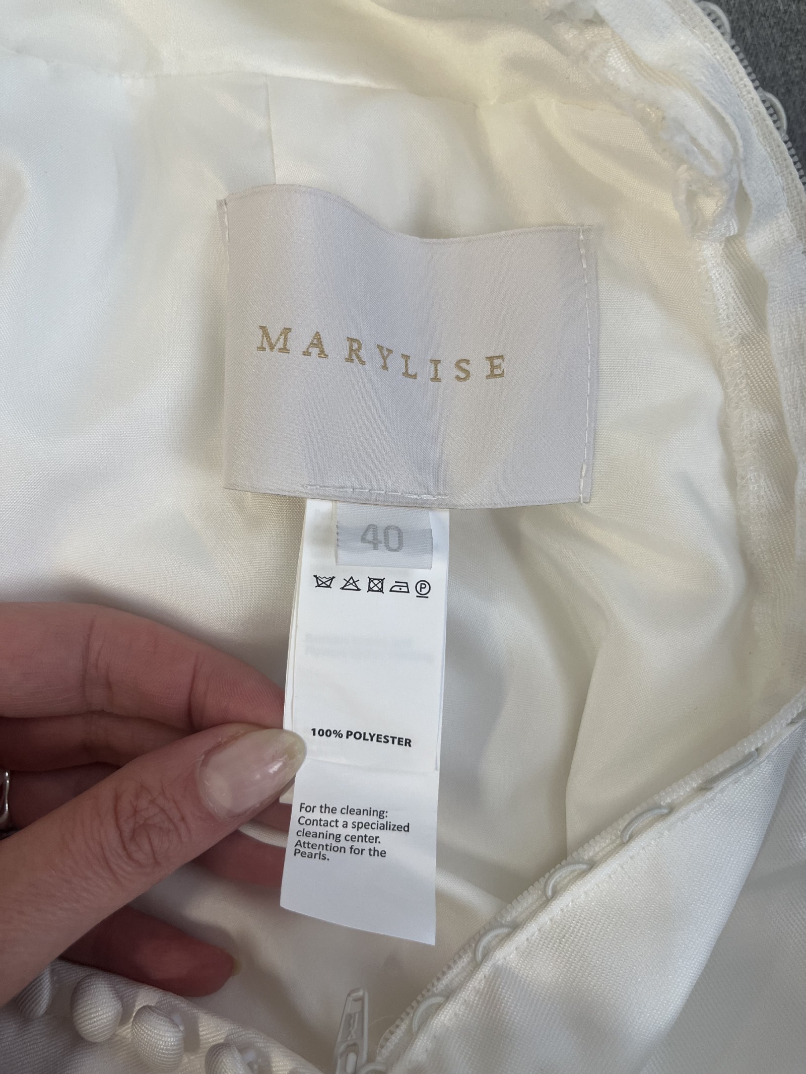 This Cervinia gown by Marylise holds a special place in my heart, and I'm excited to find it a new home. The moment I slipped it on, I felt transformed – it truly embodies the elegance that every bride dreams of on her special day. The ballgown silhouette is incredibly flattering, creating a breathtaking figure that will leave everyone in awe.