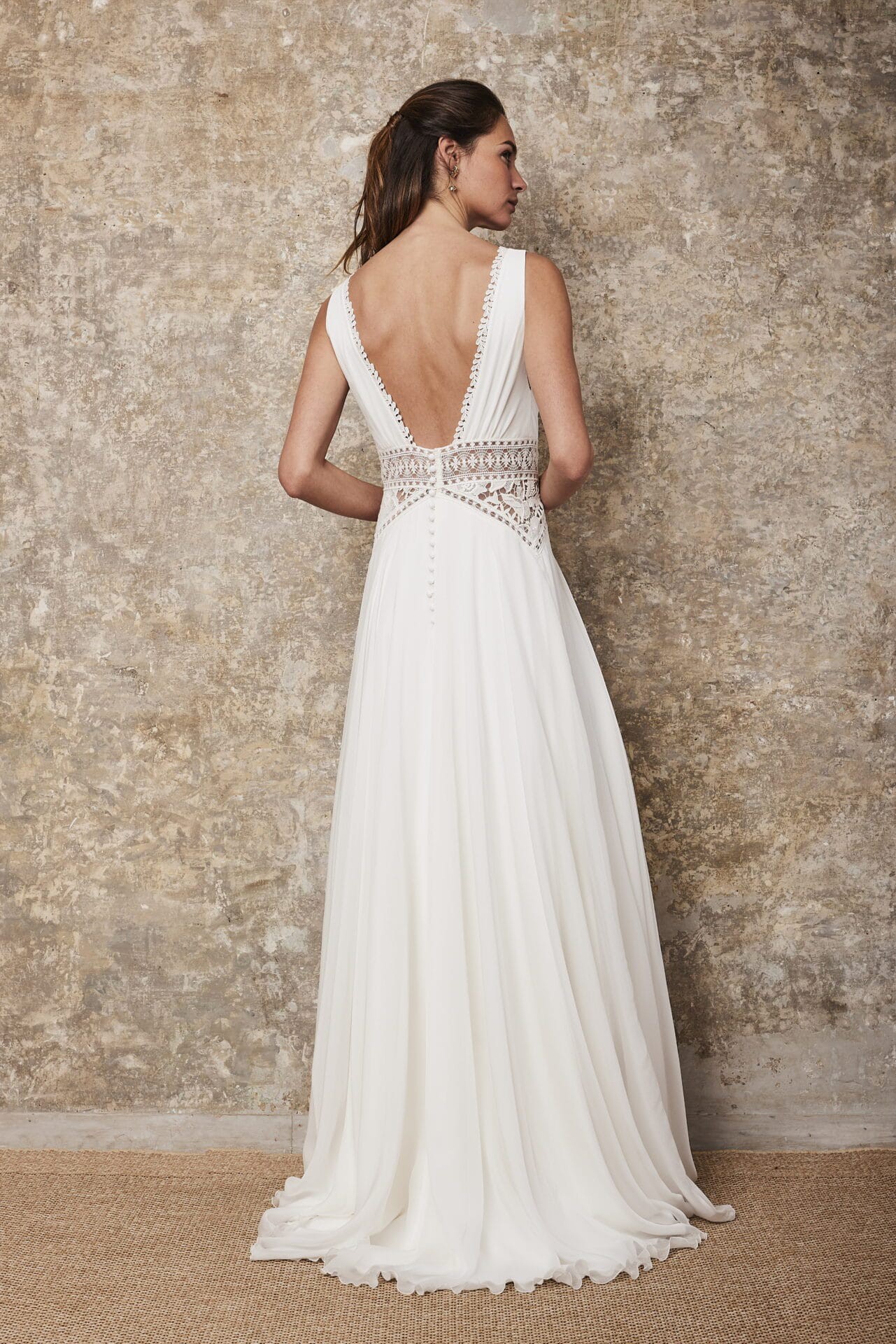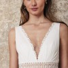 This stunning Lorient dress from Lambert Creations was my dream gown on the most special day of my life. Designed with an A-Line silhouette that elegantly sways with every movement, it provides both comfort and grace, allowing me to dance the night away without a care in the world. The deep V-neck neckline adds a touch of sophistication, framing the décolletage beautifully, while the sophisticated V-back brings an alluring surprise as I turned to greet my loved ones.