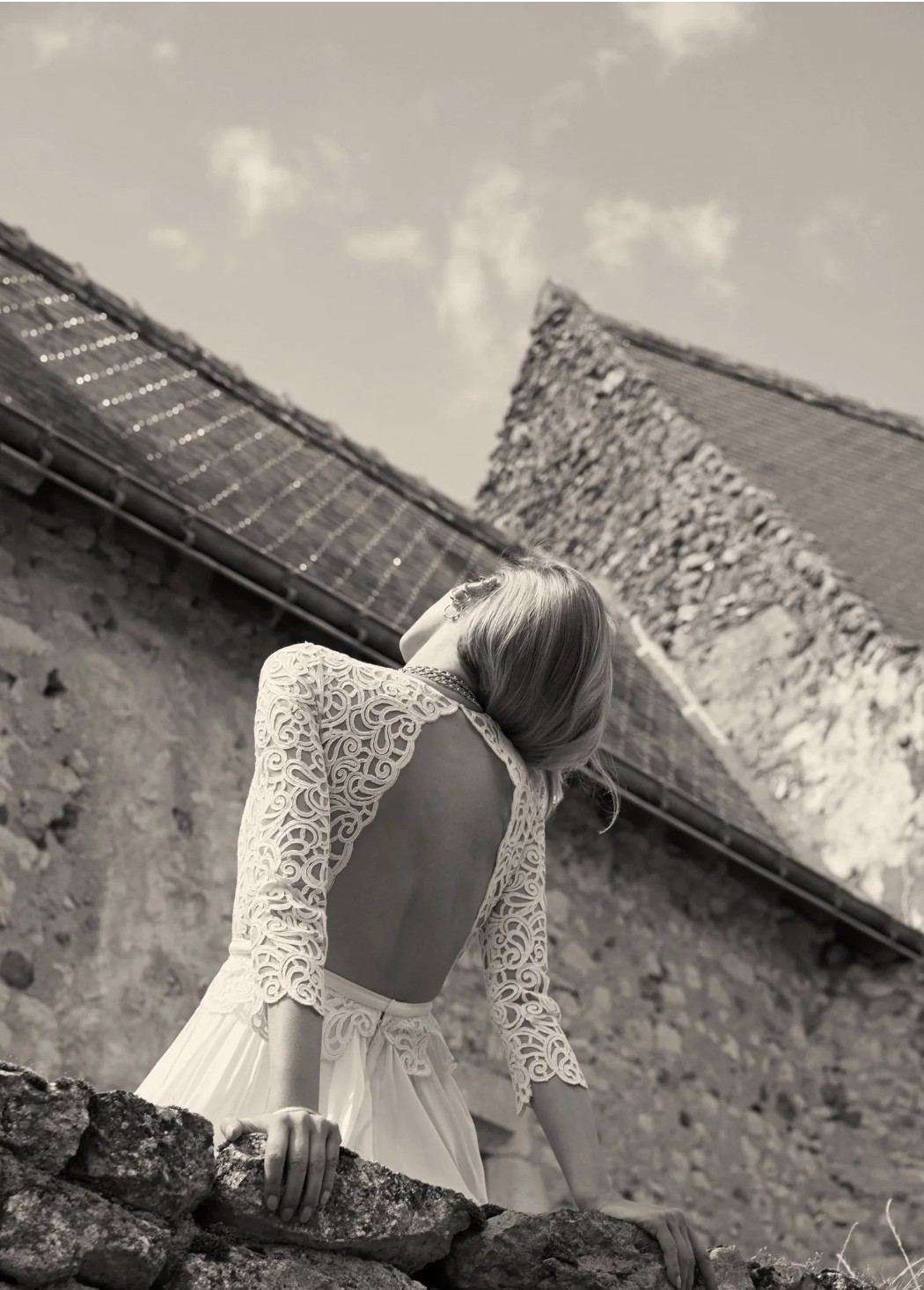 The 3/4 sleeves offer a perfect balance of coverage and femininity, making this gown suitable for various seasons and venues. The floor-length design made for unforgettable photographs, cascading gracefully as I moved. The quality of the fabric and craftsmanship truly reflects Margaux Tardits’ artistic vision, making this dress not only beautiful but also exceptionally comfortable to wear.