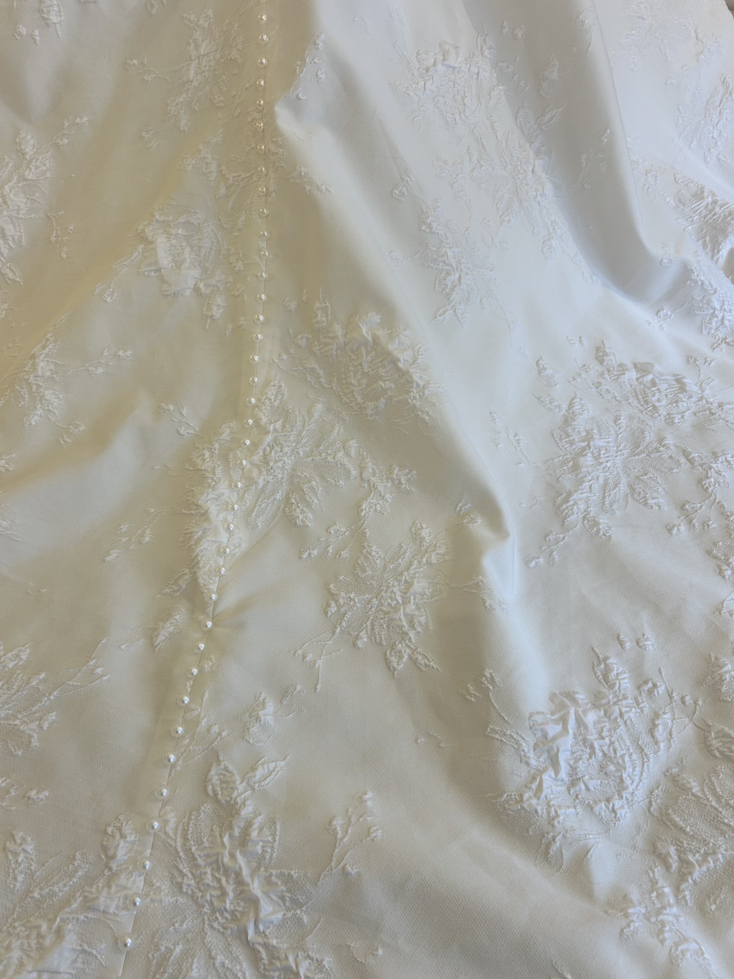 This dress is unaltered and will not be dry-cleaned before shipping. This sample is also for sale in store so this listing may get removed if the dress gets sold.