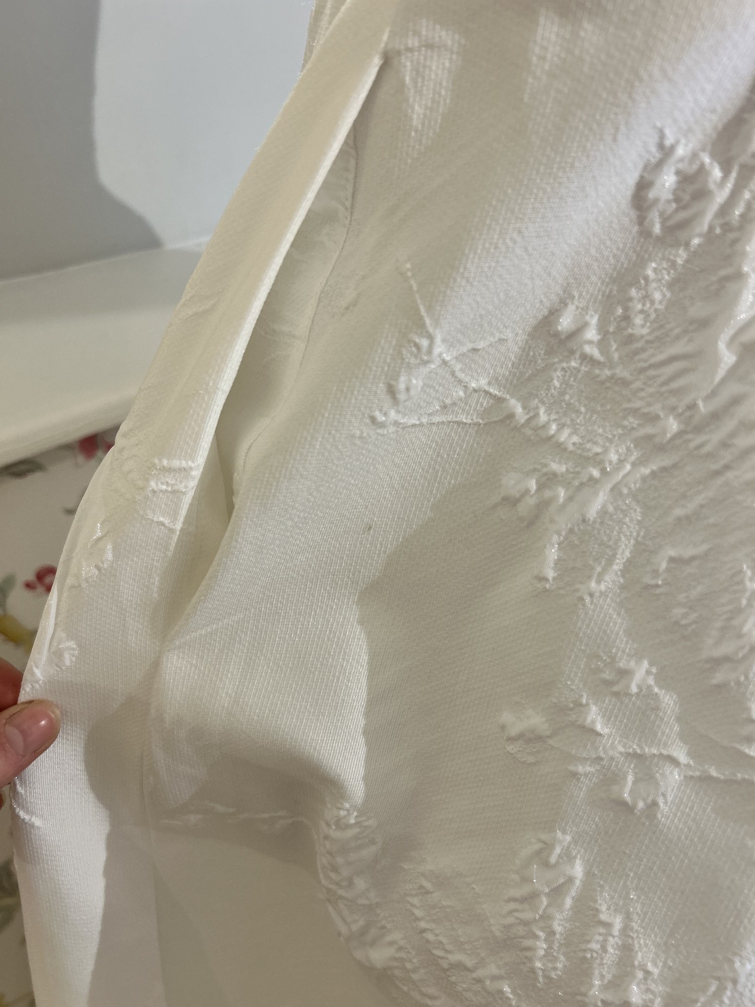 Small dark spot by pocket, as per photo