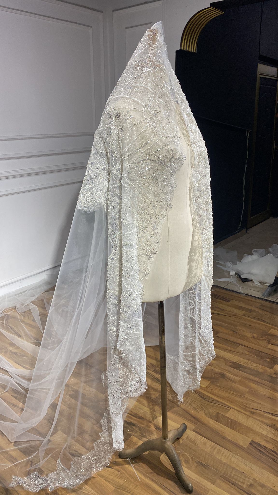 Handcrafted mermaid bridal dress from Aylin Bridal House, made in Turkey, 2025. Elegant beading, delicate embroidery, and detachable overskirt. Perfect for a luxury wedding. Custom sizing available. Dry cleaned, used only for fitting.”