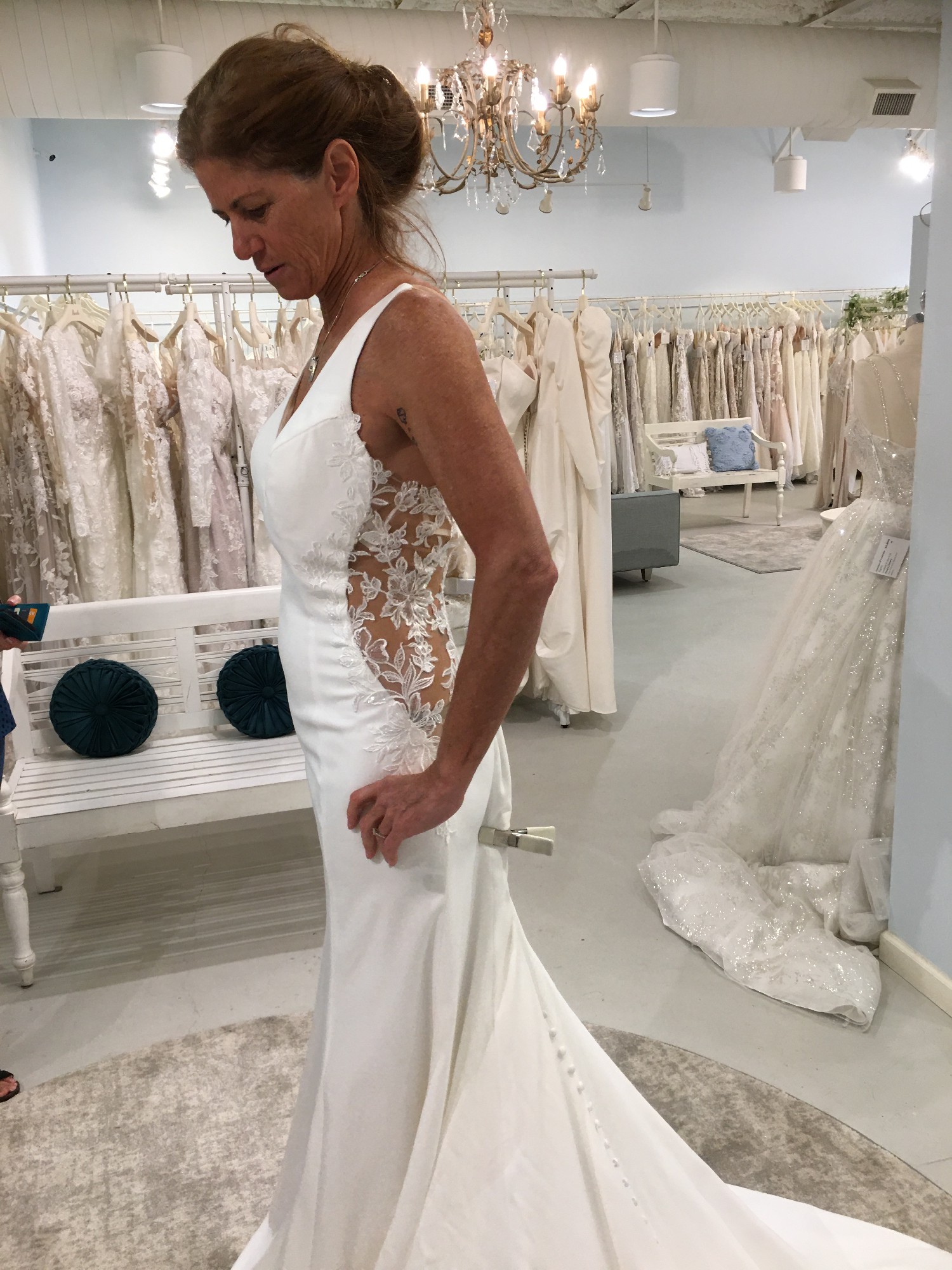Measurements are what they measured me at the time of purchase. I wore boots with a 1” heel (I am [removed]. Dress was altered with boots.