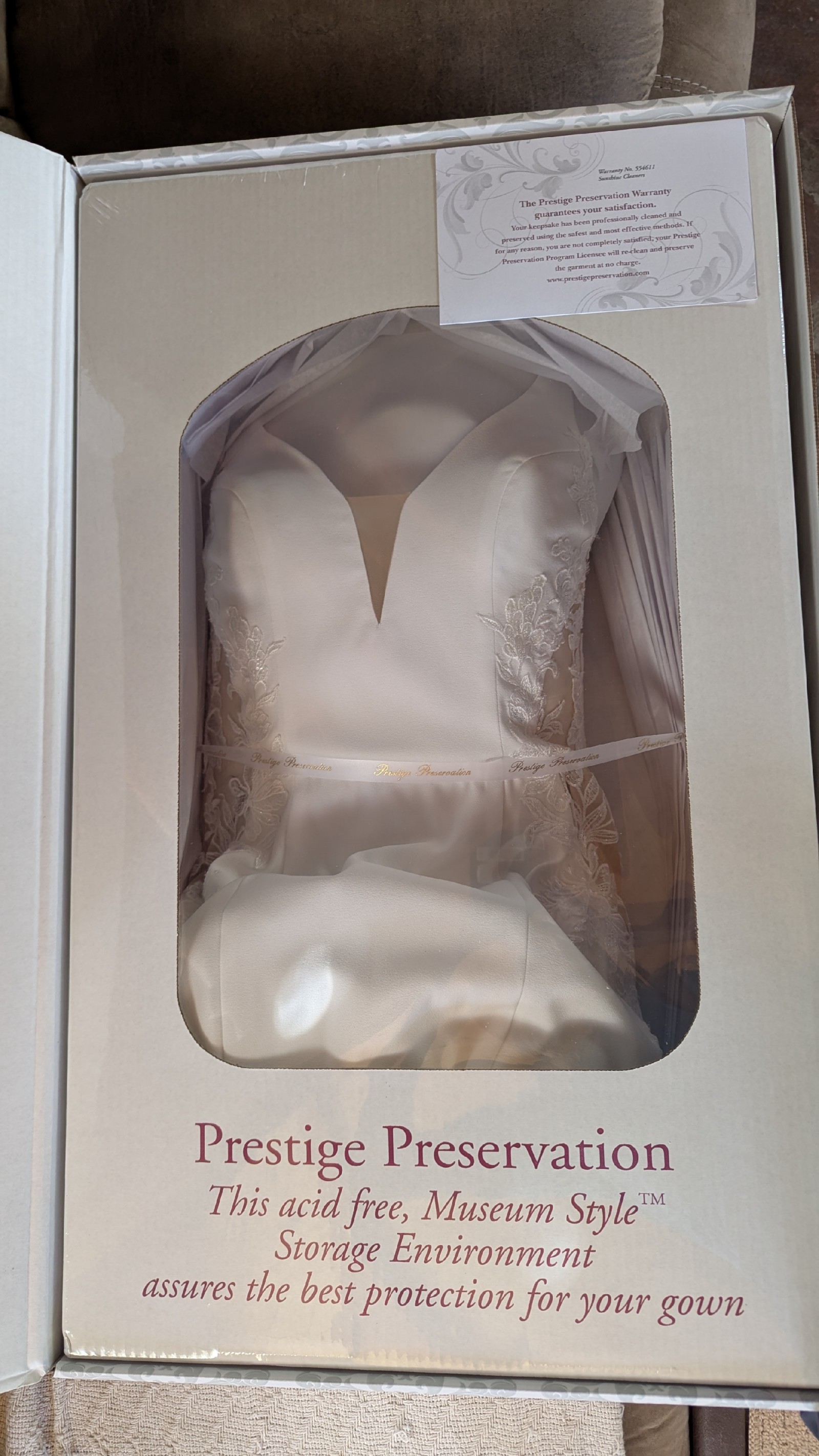 Dress has been preserved and dry cleaned.