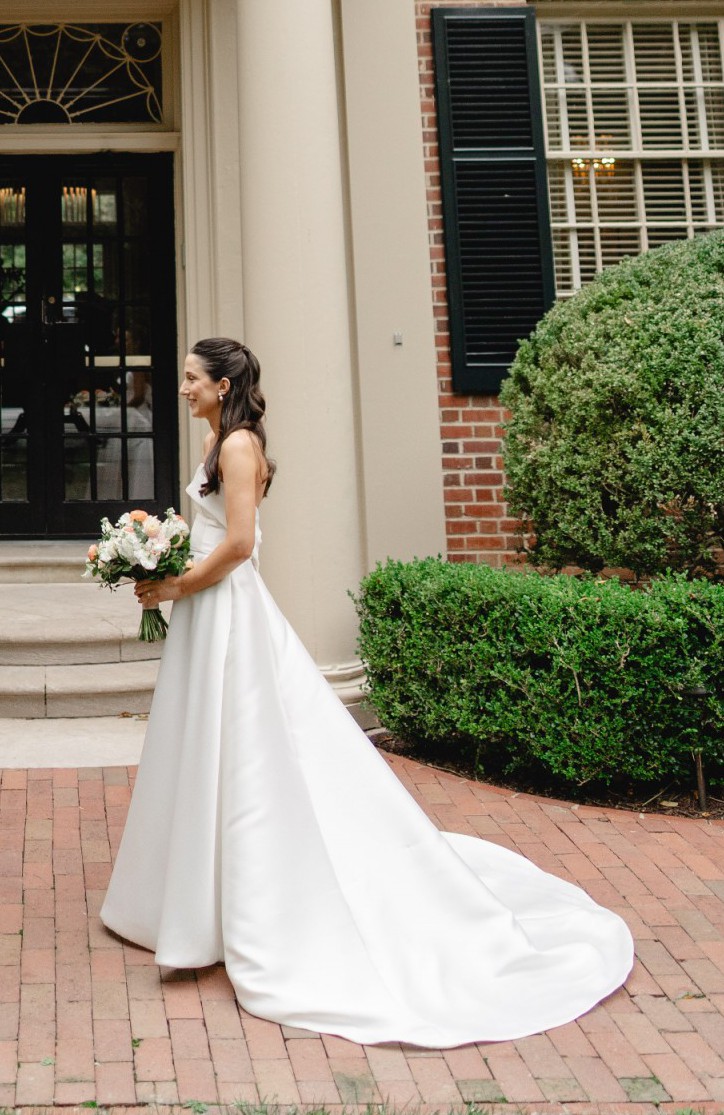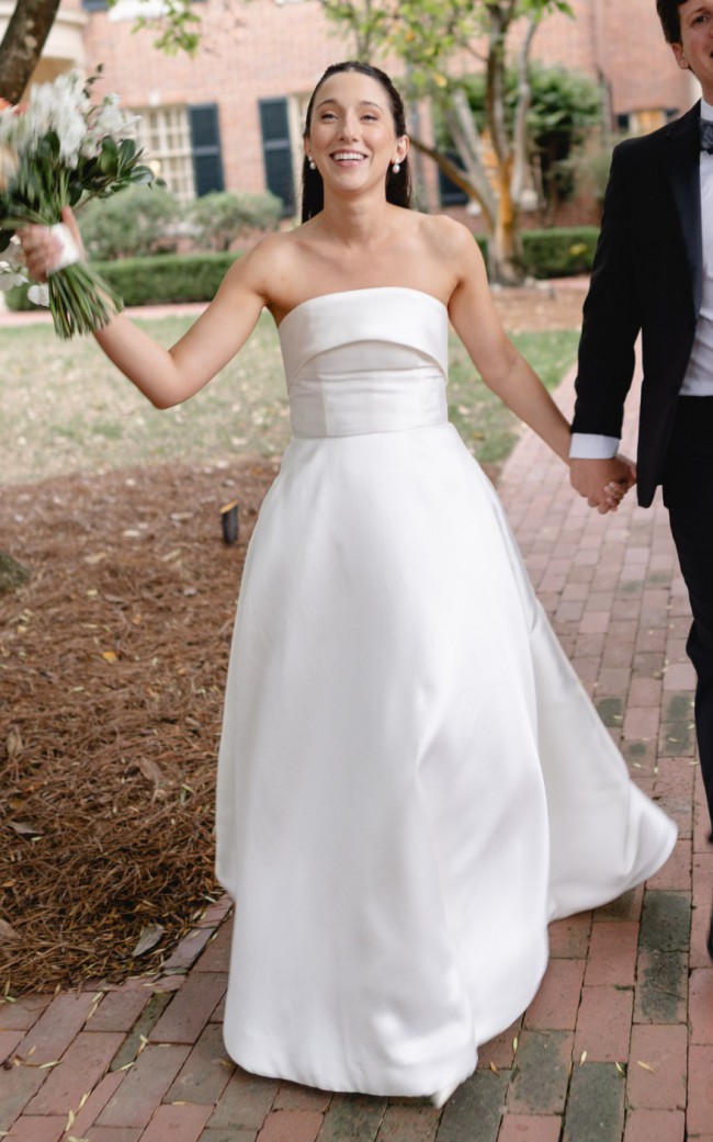 Amsale Rainey Nouvelle ivory dress. Worn for my wedding in Oct 2025 then dry cleaned. This dress was also second hand to me, so it has been worn twice total. It has been professionally cleaned both times and is in excellent condition.