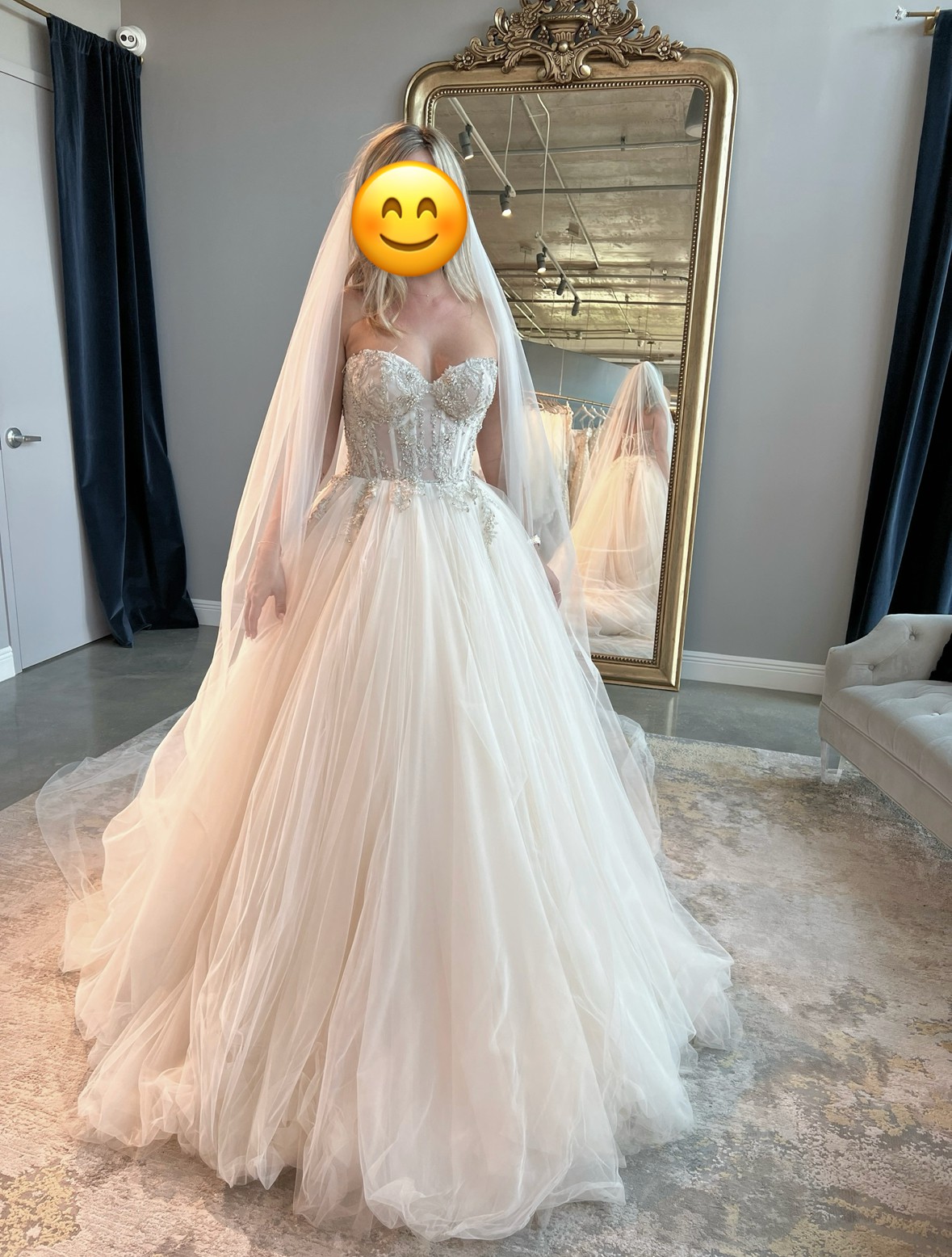 - Hem shortened for 5’5” female, removed shoulder straps (but comes with the dress if you want to reattach)