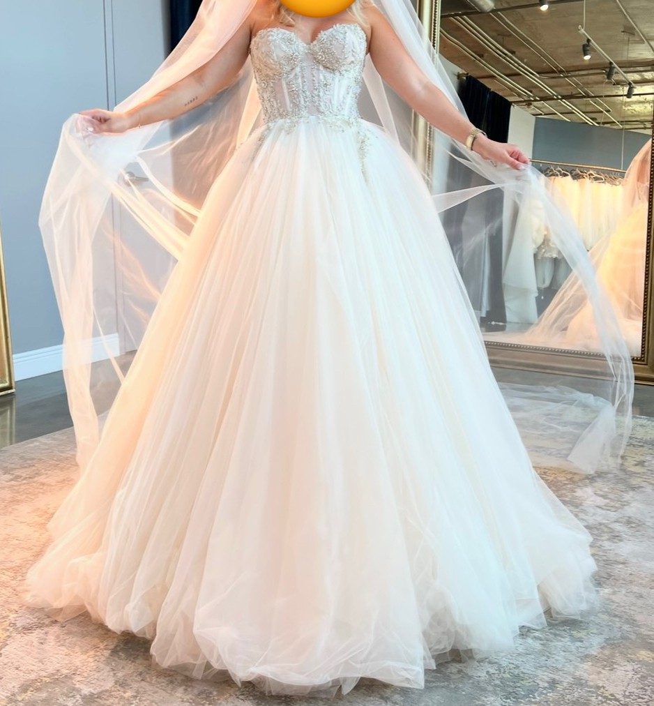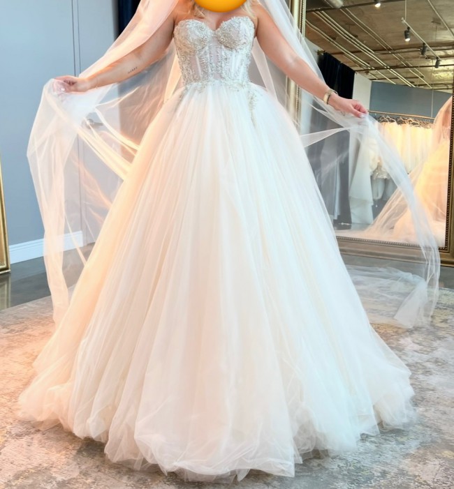 Absolutely stunning Galia Lahav Mia wedding dress. Purchased at Galia Lahav boutique in Miami. The dresss comes with two Galia Lahav bags, hanger, and veil (shown in photo). I detached the shoulder straps, but I have them available to reattach if needed.