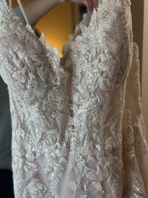 Slip into this gorgeous size 12 gown, and feel the magic of your wedding day come to life in a dress that not only tells your love story but also ensures you radiate beauty and confidence as you walk down the aisle. This is not just a dress; it’s a statement of love and elegance that will forever be cherished in memories.