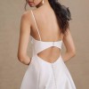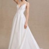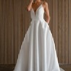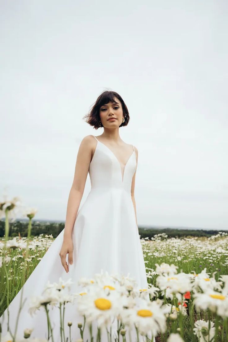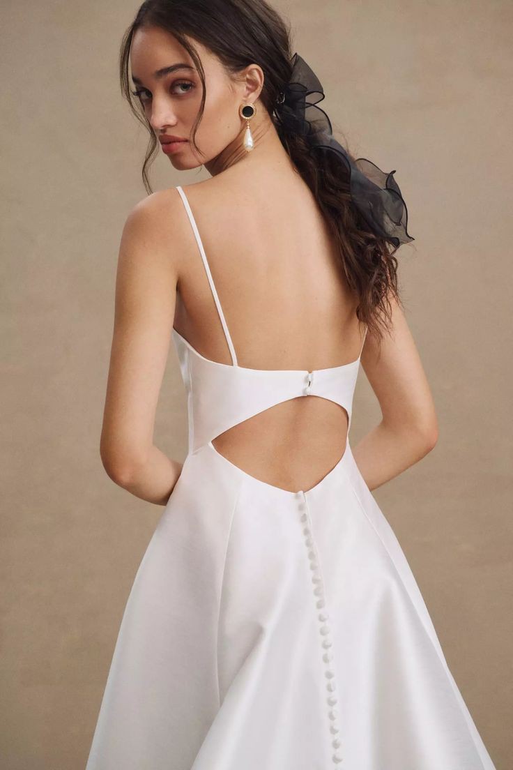 The Tamson gown, with her clean lines and modern details is absolutely timeless. Cut in our airy canopy taffeta, she has a beautifully textured finish with just a hint of sheen. Featuring a plunging neckline, a striking back cutout, and delicate buttons, the Tamson Wedding Gown pairs romantic details with modern, dramatic flair.