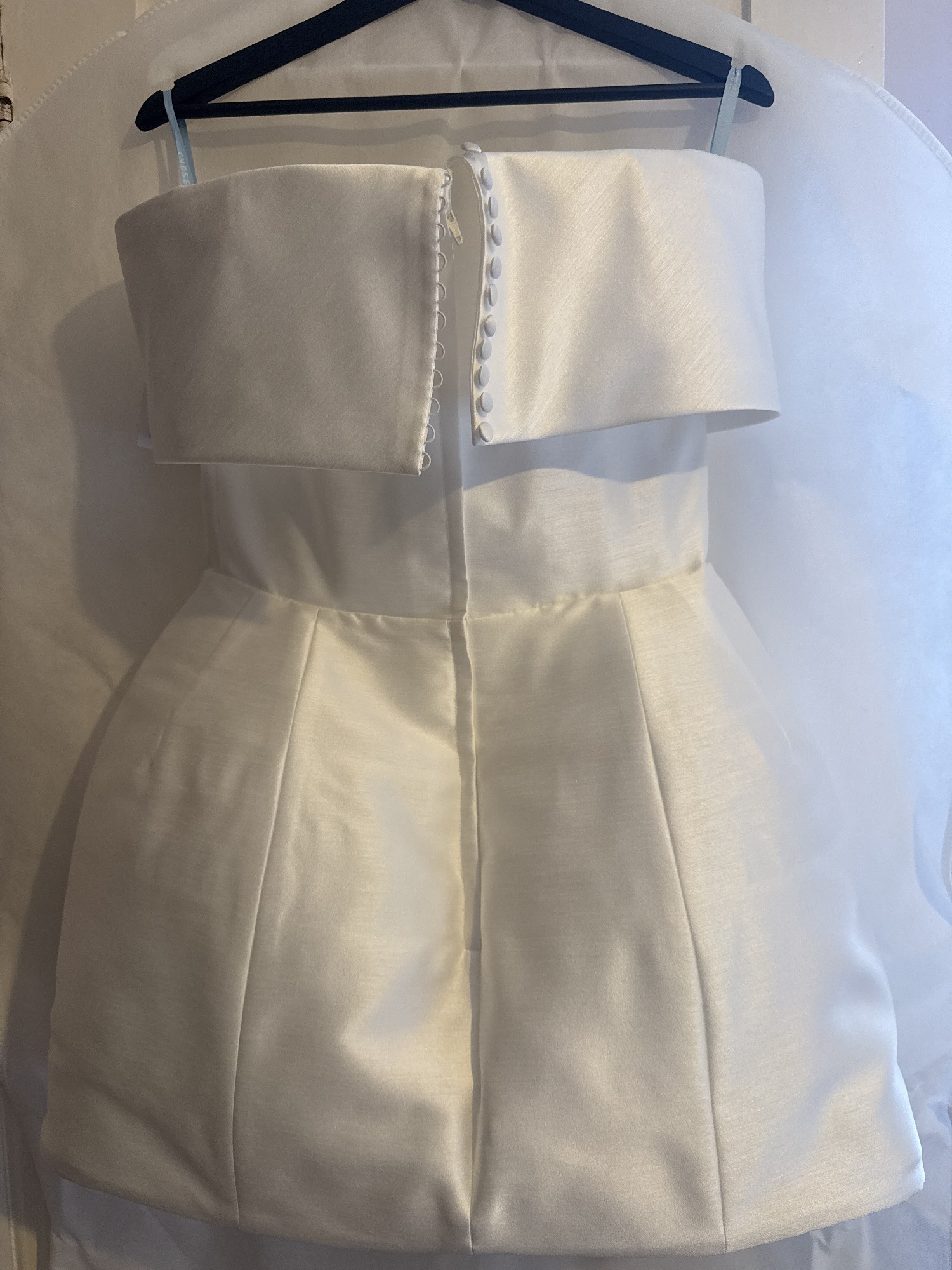 In an enchanting ivory hue, this A-line dress effortlessly combines sophistication with a youthful flair. The above-knee length adds a playful twist to the classic bridal look, allowing you to shine on your special day while creating unforgettable memories on the dance floor.