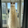 I bought this dress directly from a bride who had worn it for a few hours on her wedding day, and then had it professional dry cleaned. I've inspected every inch of it and you can't tell that it's anything other than pristine - aside from a bit of embroidery having come slightly undone on the strap (but can be very easily re-attached). I have also taken extra steps to preserve it in its perfect condition - including storing it in acid free tissue paper, the Galia Lahav garment bag it came in, all wrapped in a plastic garment bag.