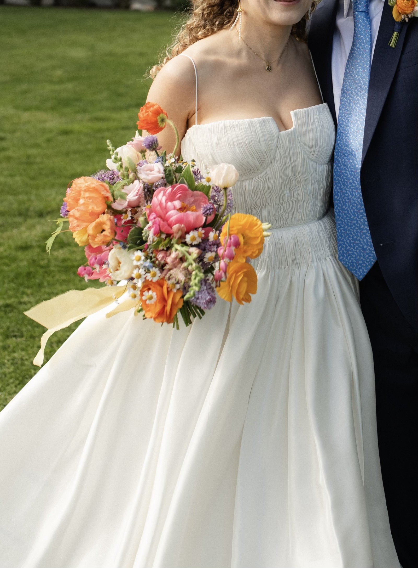 Dress with pleated silk bodice with defined cups and thin straps! I think it's a French bustle? This dress is now discontinued so great opportunity to get the Watters Lucetta!