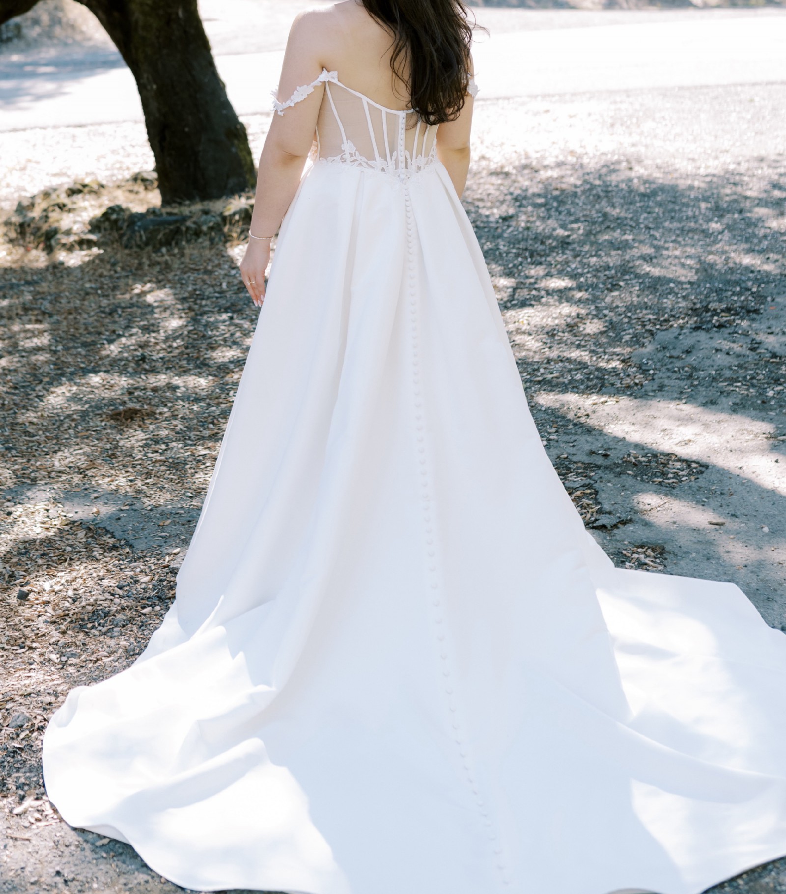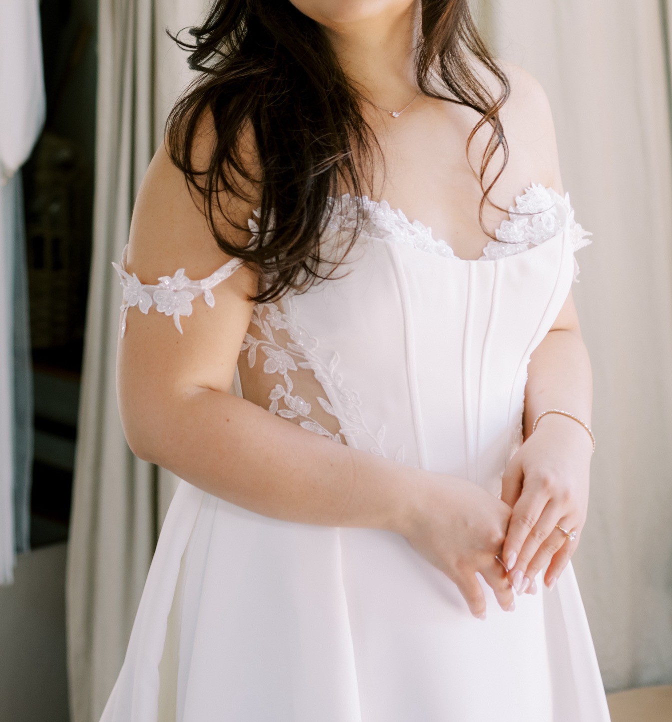 Such a timeless yet modern, fashionable, and comfortable gown, perfect from ceremony to reception. This dress truly made me feel beautiful and confident, and I hope it can bring the same joy to another bride. Let this enchanting gown be a part of your beautiful day :)