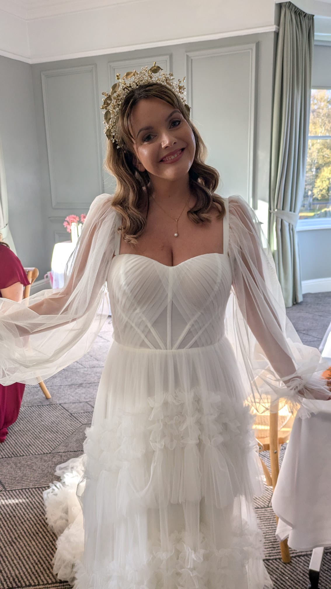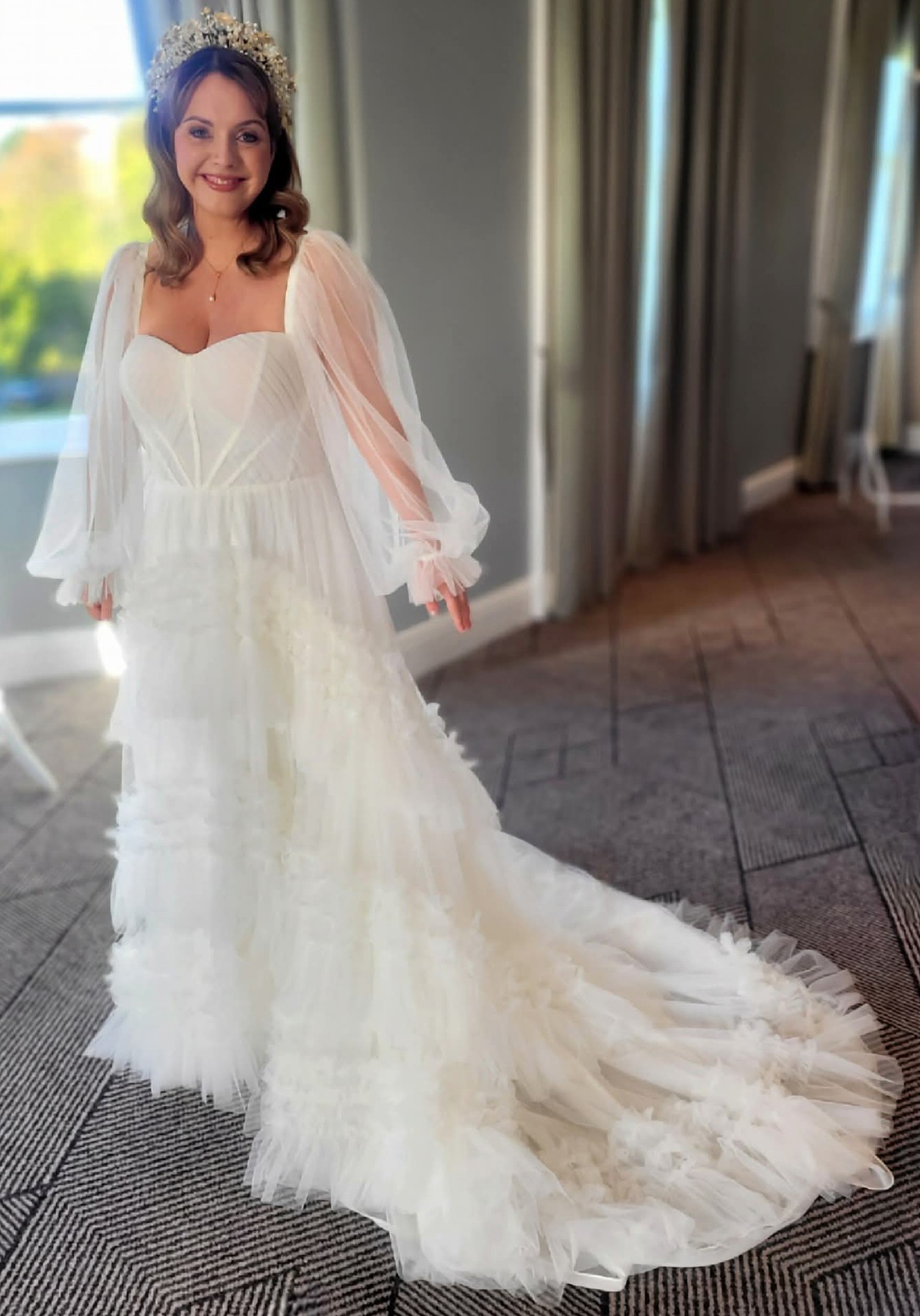 Hi all! Selling my absolutely stunning All Who Wander ivory wedding dress. This is the only dress I tried on in over 30 wedding dresses which I honestly thought was worth the price. It's stunning corset top with gorgeous ethereal ruffle tulle skirt. The sleeves can be removed or worn up or off the shoulder as shown in the pictures. It's also a nice and light dress (not too heavy)