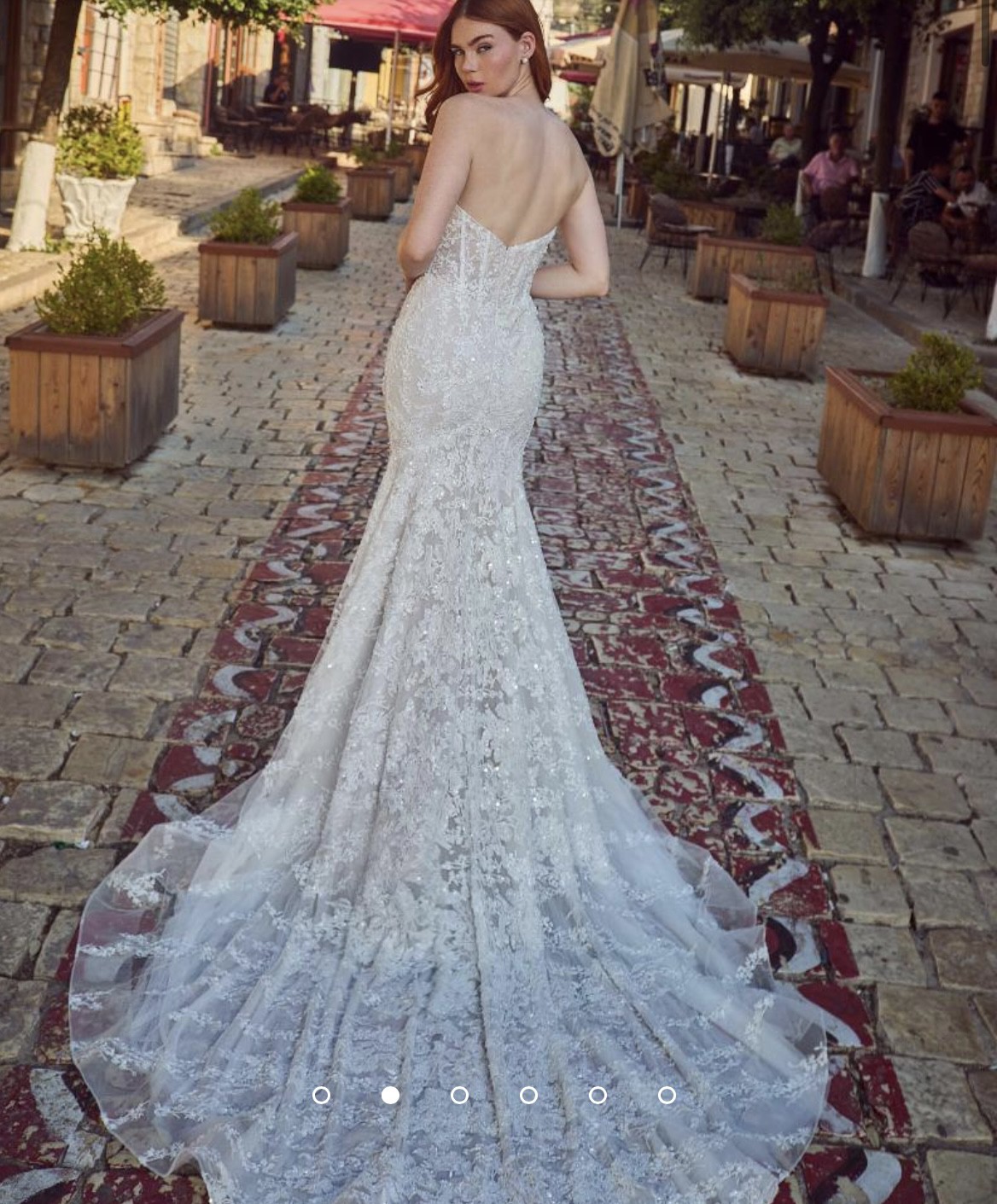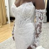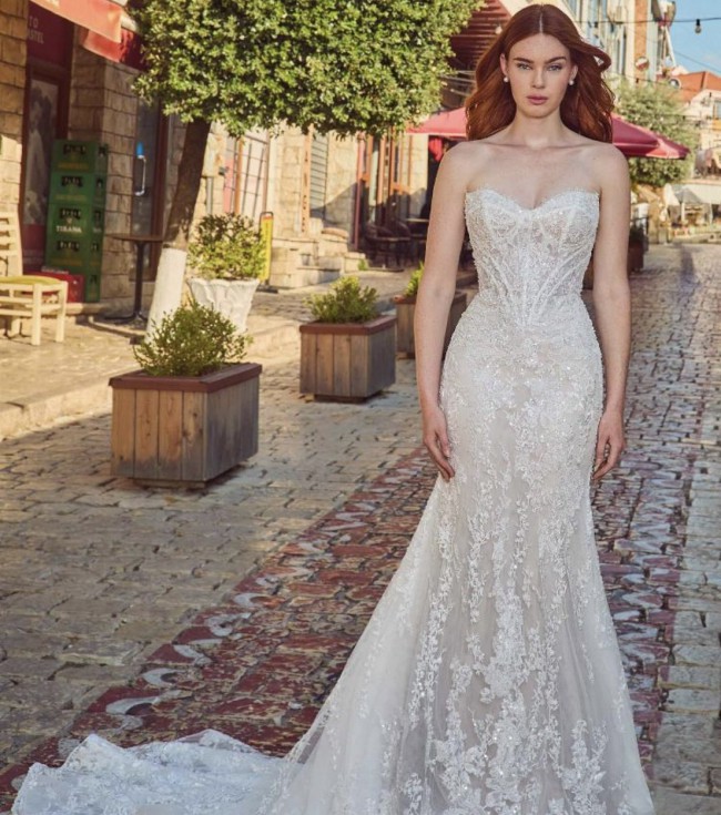 This stunning strapless lace wedding dress offers a timeless and sophisticated look. Perfect for your special day, it features intricate lace detailing and a flattering silhouette.
