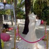 What sets this dress apart are the exquisite detachable sleeves, providing versatility and style for your special day. Choose to wear them for a romantic touch during the ceremony, then remove them for a playful, more modern look at the reception. The mid-back design adds an element of sophistication, perfectly complementing the strapless feature.