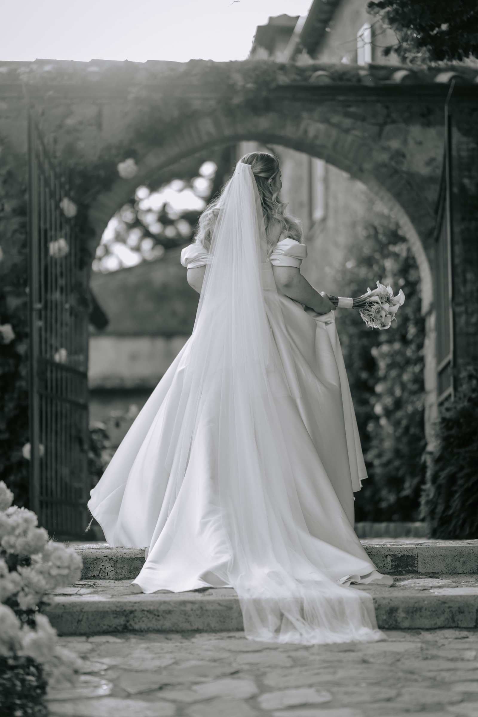 Crafted from high-quality satin, the Lotus gown offers a luminous finish and a beautifully structured silhouette. The slim satin waistband highlights the waist before flowing into a full A-line skirt that moves gracefully and creates stunning volume. The sweeping train adds a bit of drama whilst still feeling classical , making this gown perfect for brides seeking a classic yet contemporary wedding dress with dramatic elegance.