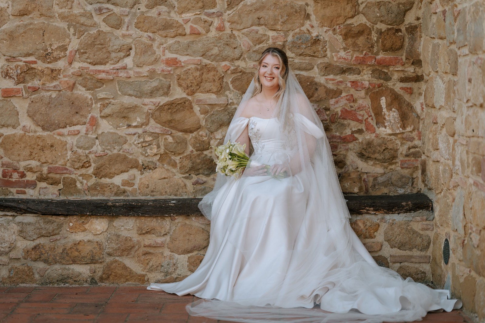 This is a custom made gown, At the time I was a U.K. 14 but had the waist brought in. In addition using excess fabric a waist corset belt is hidden on the inside which really helped keep the gown sat in place all day and gave that extra cinched waist look whilst being comfortable. This dress is alterable so would fit a 12-14. I am 5”10 and wore 4.5” heels, so it’s plenty long and could be altered to fit most heights and would suit a tall bride also.