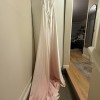 Beautiful and unique gown! Bough from a dress boutique as a sample gown with some minor imperfections (price reflects this-wonderful deal for someone not wanting to spend thousands but still get a high end dress!) With so much material, blemishes on train are very hard to spot! I haven’t worn and it hasn’t been altered, just changed my mind.