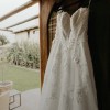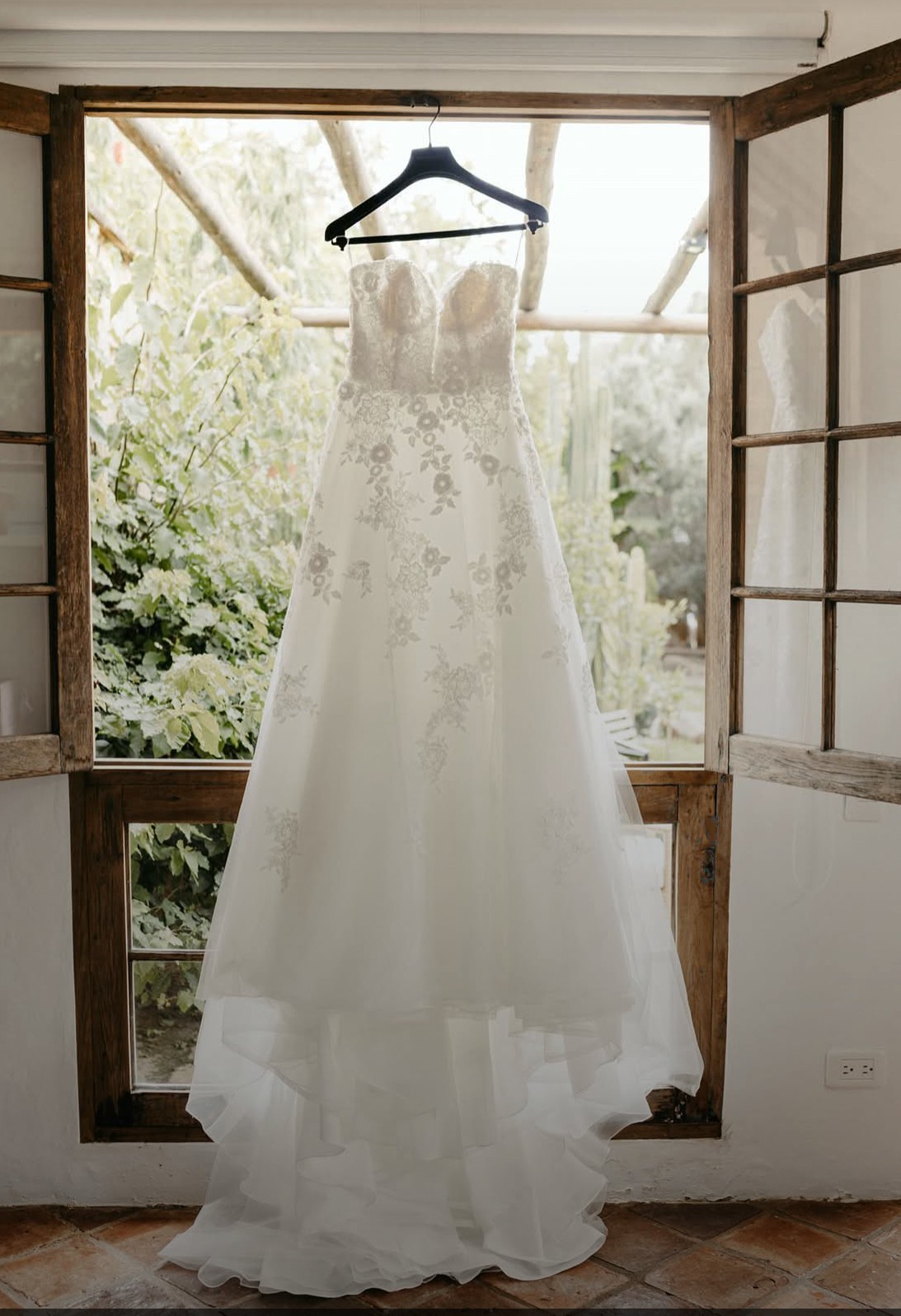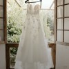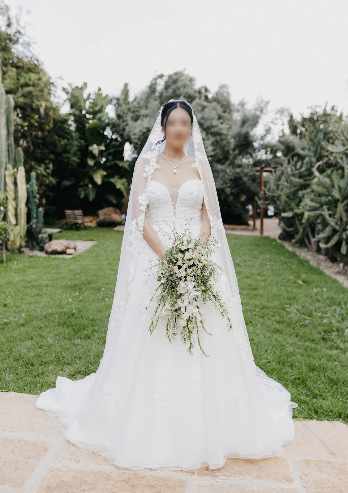 The A-line design flows effortlessly to the floor, creating a dreamy silhouette that swept across the aisle with grace. The stunning 3D flowers delicately embellish the fabric, adding a touch of whimsical flair that caught everyone’s eye. I received endless compliments on those intricate details, and they truly made the dress stand out.
