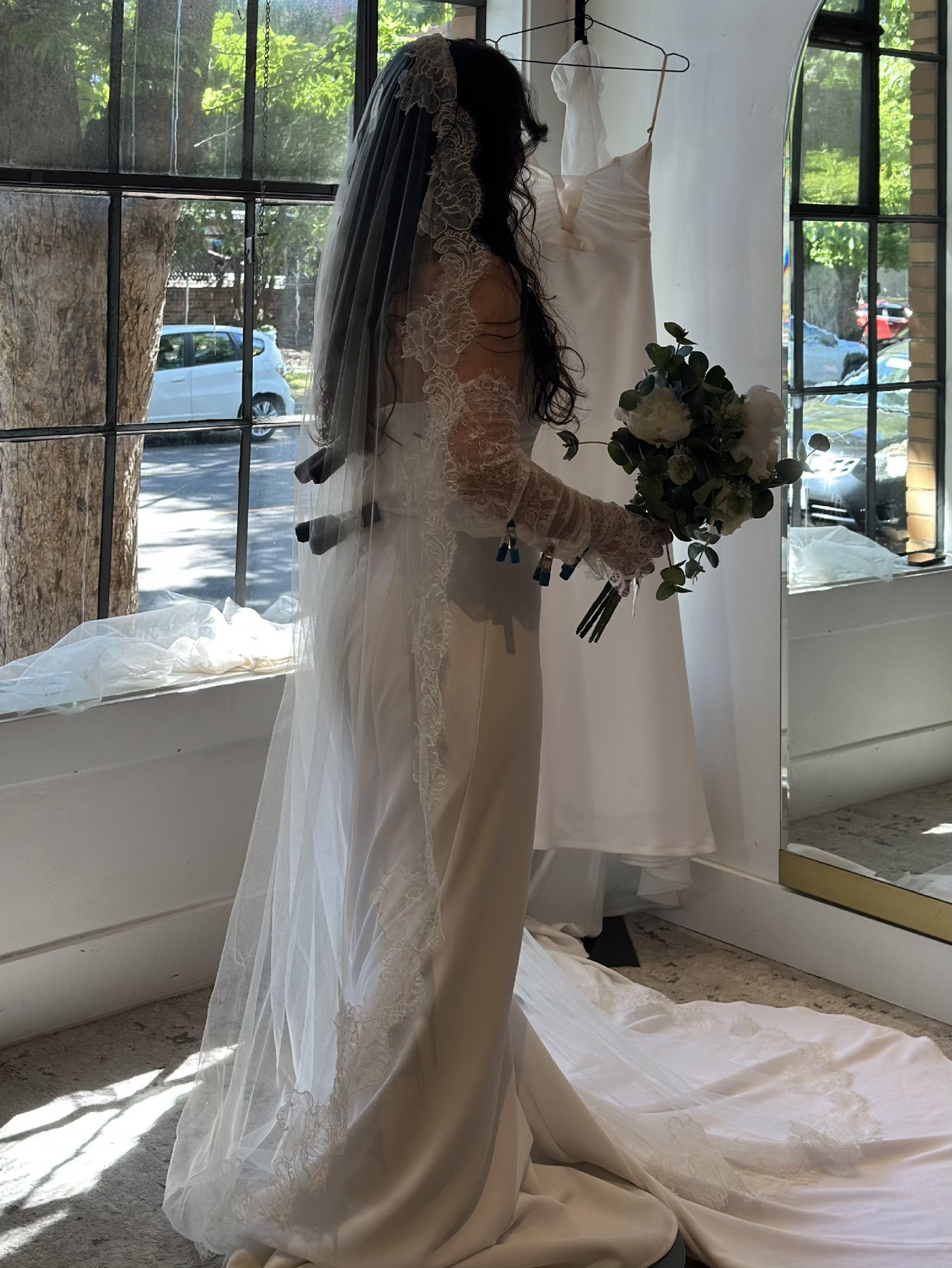 A few areas of mild discoloration from boutique handling - the bridal boutique assured me that this type of discoloration is typical of samples and should respond well to a standard professional cleaning. I’ve included close-up photos so there are no surprises.