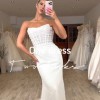 - Flattering fit-and-flare silhouette with a dramatic train