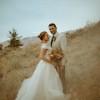 This elegant A-line wedding gown is the perfect blend of romantic lace, classic silhouette, and dreamy movement. The bodice features delicate floral lace appliqué that continues seamlessly onto the cap sleeves, creating a soft and feminine look that provides just the right amount of coverage. The neckline has a flattering, subtly structured shape that enhances the figure without feeling restrictive.