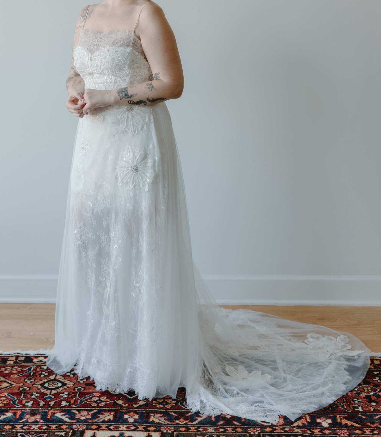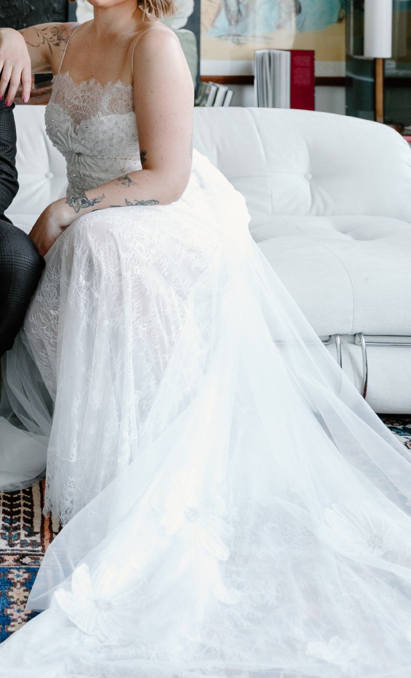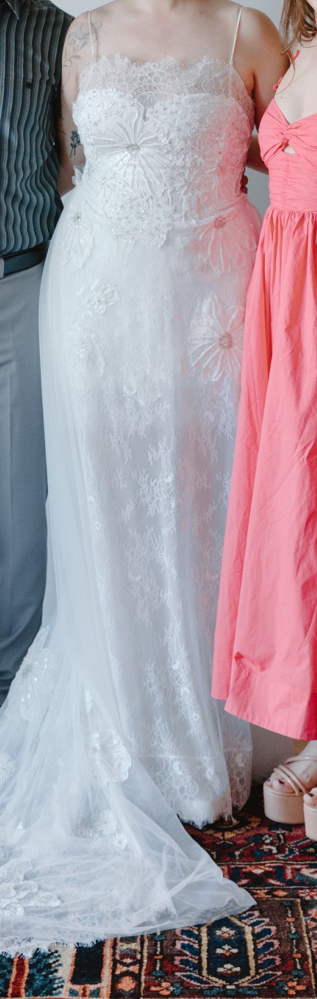 - dress taken in everywhere, heigh shortened, train shortened matches measurements provided