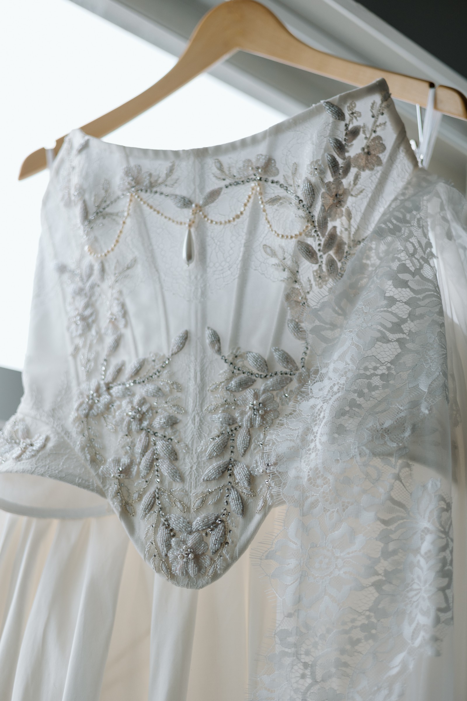 This Isabelle wedding dress by Kim Kassas is the embodiment of elegance and modern romance. The stunning strapless design enhances the neckline with a perfect curve, while the corset back offers both support and an ideal fit that flattered my figure throughout the day.