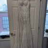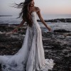 The low back design offers a captivating surprise as you move, showcasing your figure in an enchanting way. Drenched in luxurious beading and intricate embroidery, this gown sparkles with every step you take, ensuring that all eyes will be on you as you glide down the aisle. The floor-length hemline lends a regal quality, making it perfect for both grand venues and intimate settings alike.