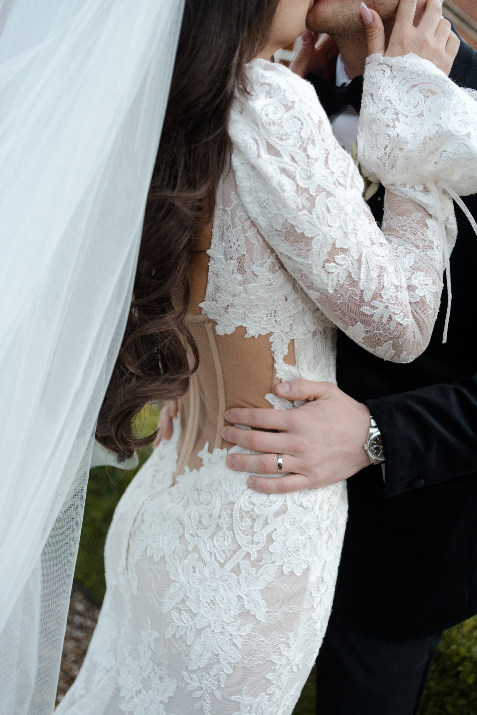 A breathtaking lace wedding gown from Berta Privee, Collection No. 11. This stunning dress features a romantic sweetheart neckline and corseted waist, flowing into a mermaid silhouette that hugs the figure and flares beautifully as you walk. Crafted from delicate Chantilly lace, the gown showcases Berta’s signature semi-sheer corset bodice and is adorned with exquisite floral lace placement detailing throughout, complete with an illusion back for added elegance.