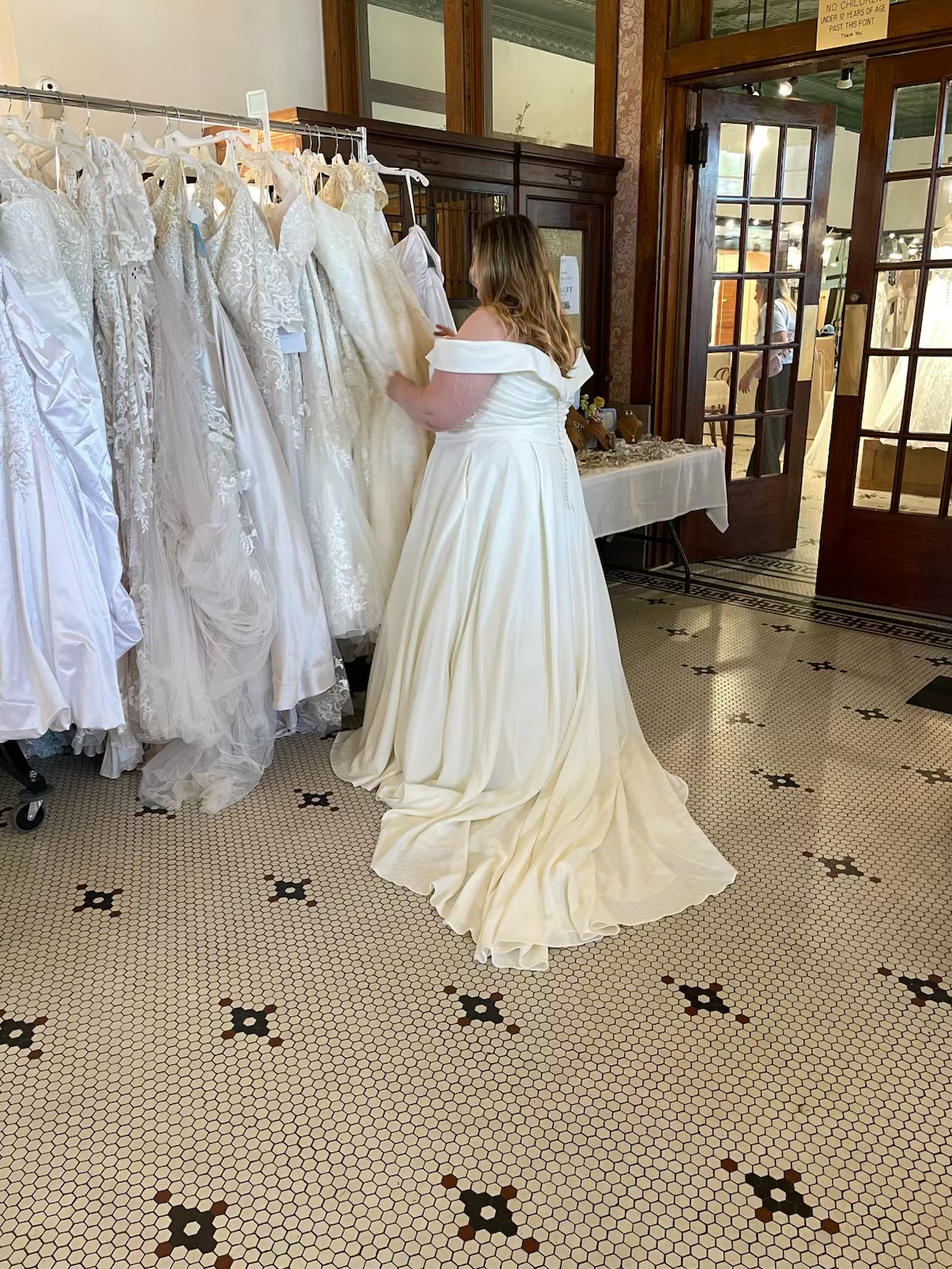 This dress has never been worn or altered! Bought at Low's Bridal in Arkansas off the rack. I bought it because it is both stunning and extremely COMFORTABLE dress that is not too heavy. However, I ended up later finding "the one" but I definitely would have been very happy in this dress.