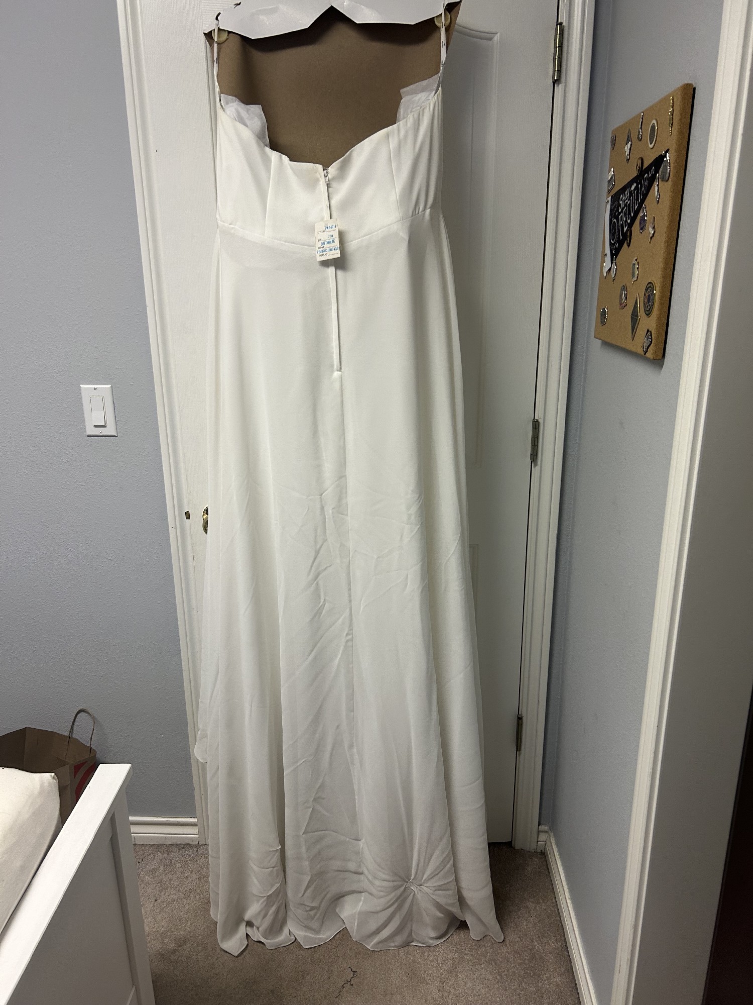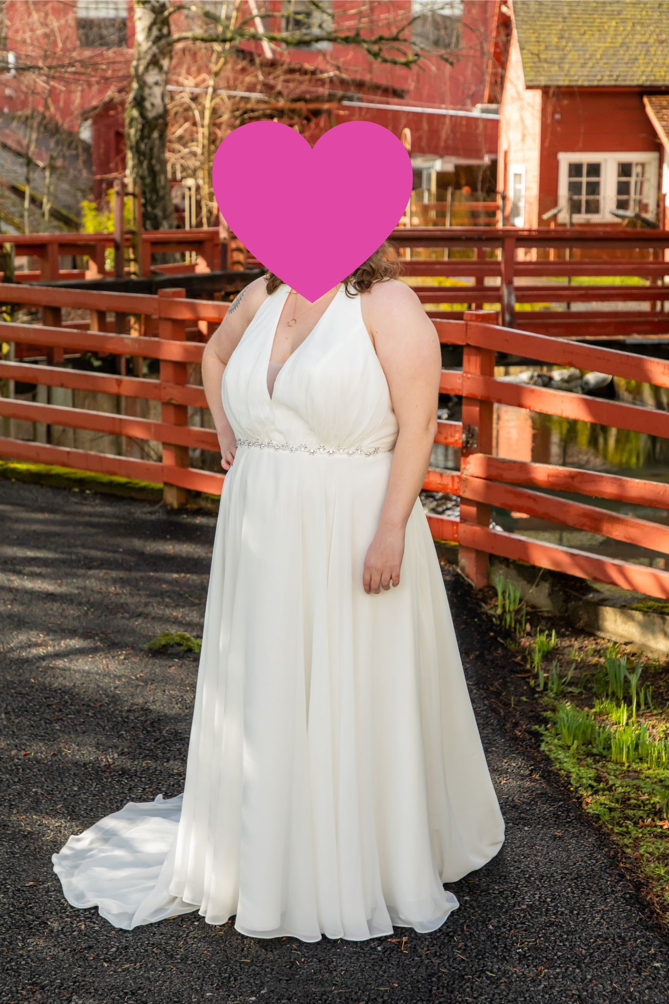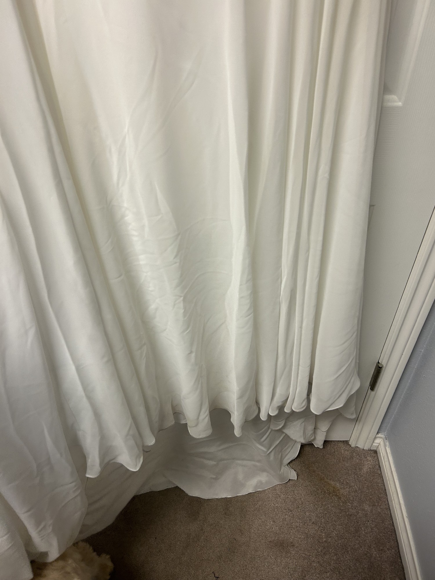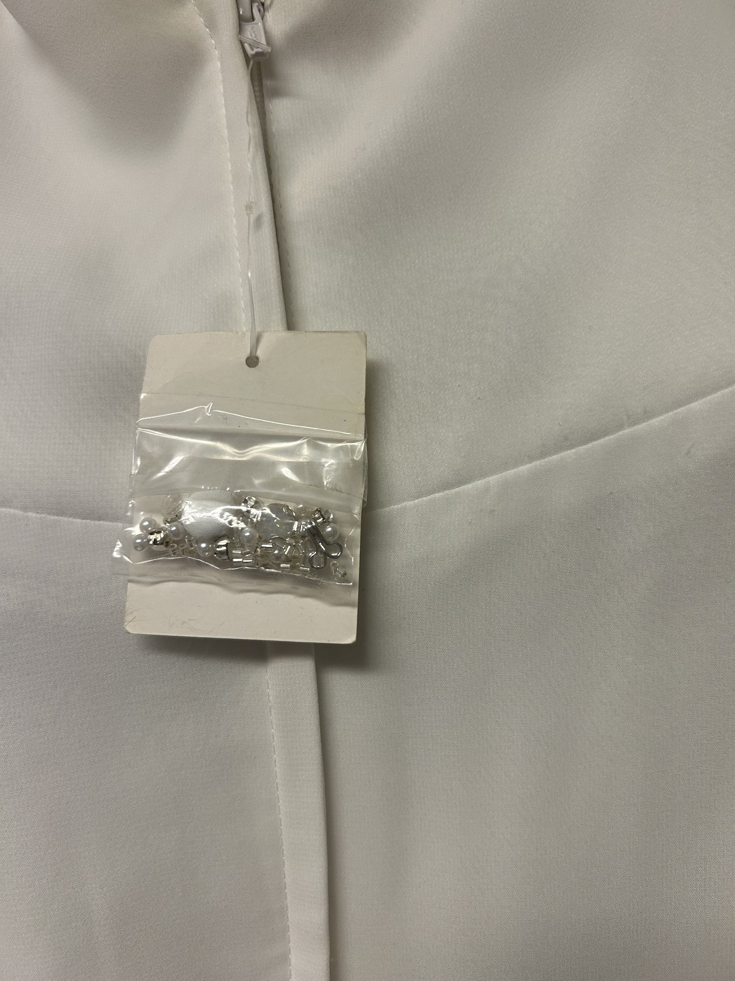Beautiful David's Bridal halter dress from 2022. It's in good shape - just needs to be dry cleaned to get out the stains in the armpit and the wrinkles. I saved the extra beading from when it was altered.