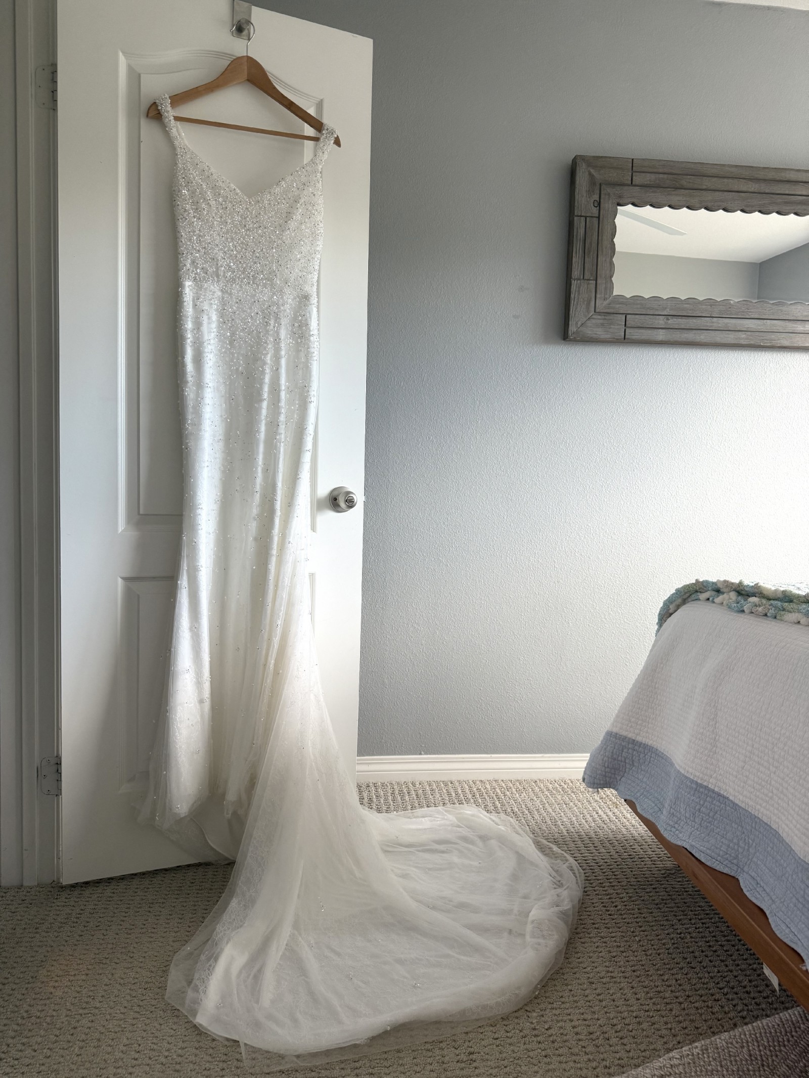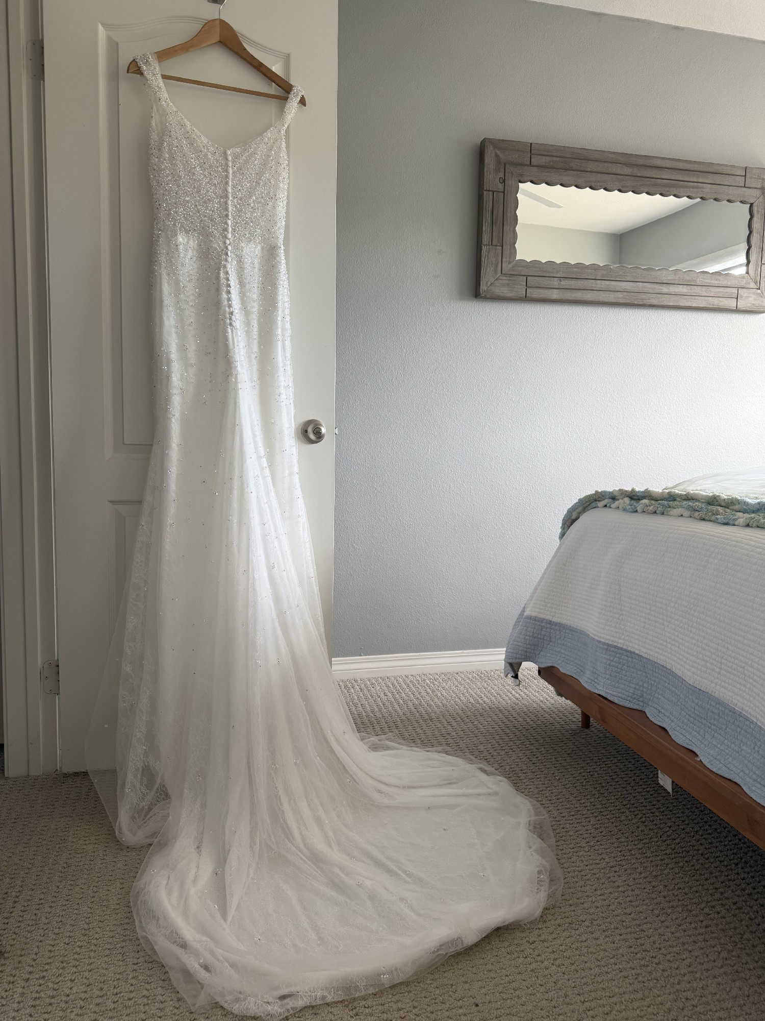 This size 10 dress has been lovingly cared for and is just waiting for another bride to create cherished memories in it. I can't express enough how magical it made me feel, and I hope it brings you as much joy as it did for me. If you're ready to say "I do" in a gown that radiates beauty and romance, this is the one.