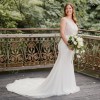 This Morilee gown has been a dream come true for me on my special day. Designed by the talented Madeline Gardner, this beautiful sheath dress features an off-the-shoulder neckline that perfectly highlights the collarbone and adds an elegant touch to the overall silhouette. The mid-back design enhances the allure while providing comfort throughout your wedding.