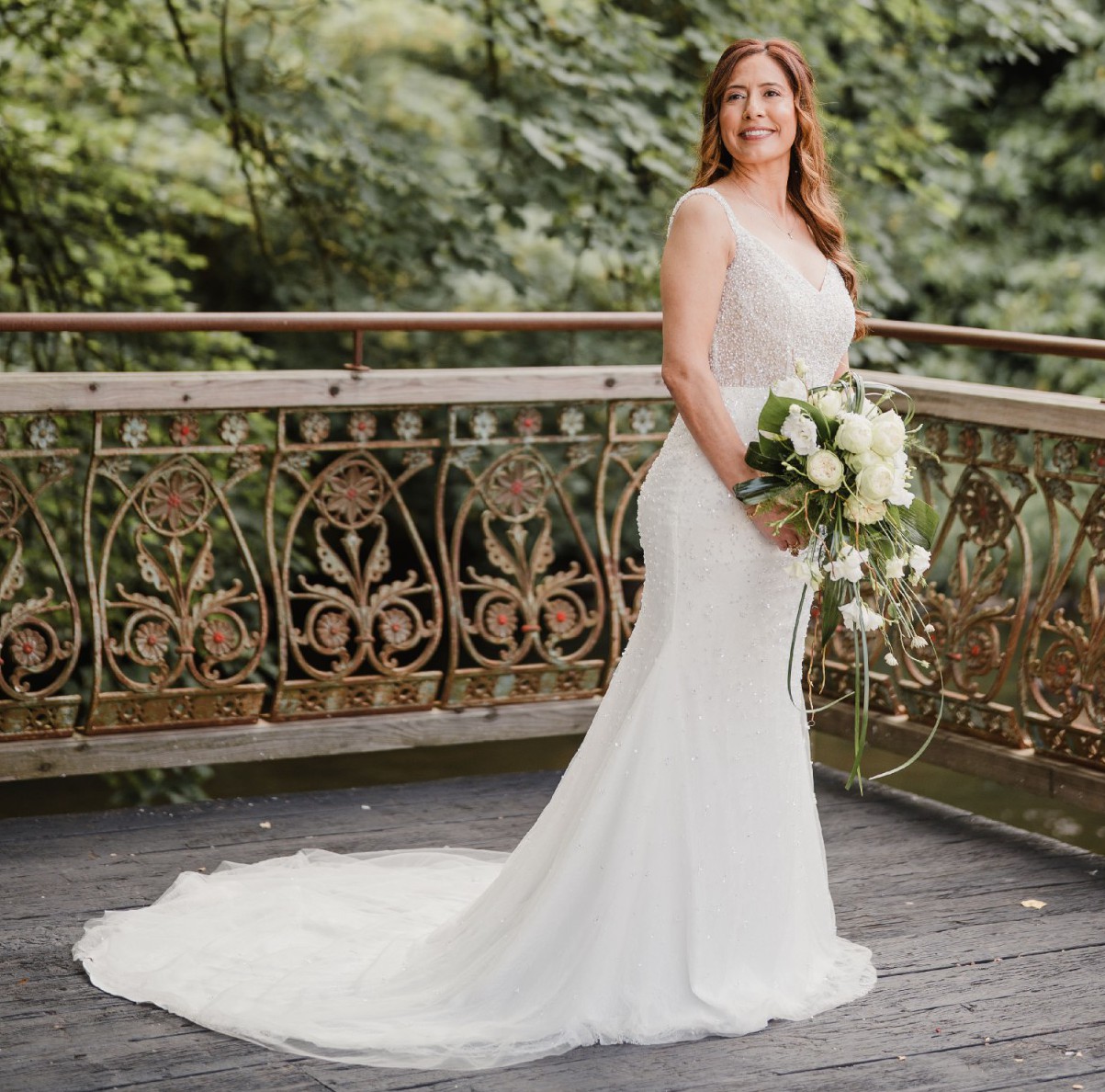 As you step into this floor-length beauty, you'll be captivated by the intricate details—beading, crystals, embroidery, pearls, and sequins catch the light in the most enchanting way, turning heads as you walk down the aisle. The stunning craftsmanship not only elevates the gown but also makes it a timeless piece that will remain in your heart forever.