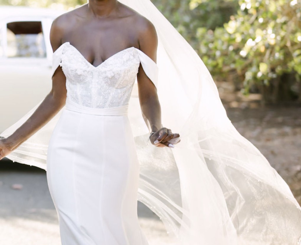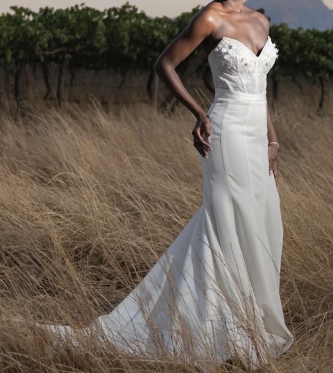 She comes with detachable sleeves, so you can effortlessly switch up your look from ceremony to reception. The dress also has a button at the back to hook up the train for comfort, meaning you can dance the night away with zero fuss. I wore this dress comfortably all night and never needed a second dress.