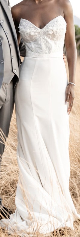 Noemi is a beautifully structured ivory gown with a sweetheart neckline, featuring intricate detailing and boning at the top to create gorgeous shape and support. The bodice is detailed and elegant, while the satin skirt flows effortlessly, flaring gently from the knees for that timeless, flattering silhouette.