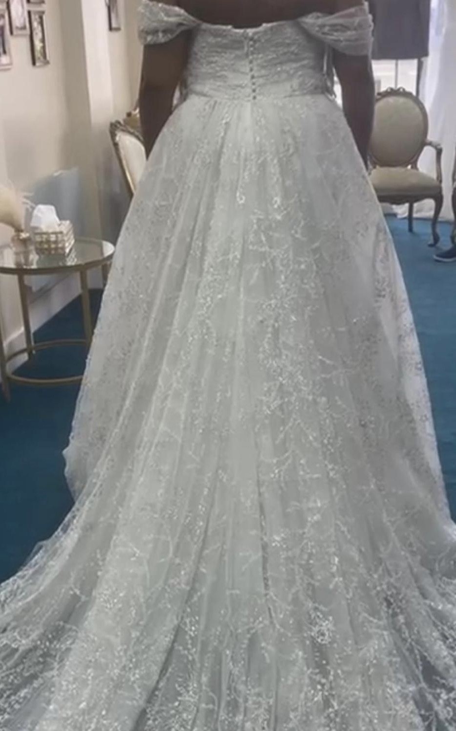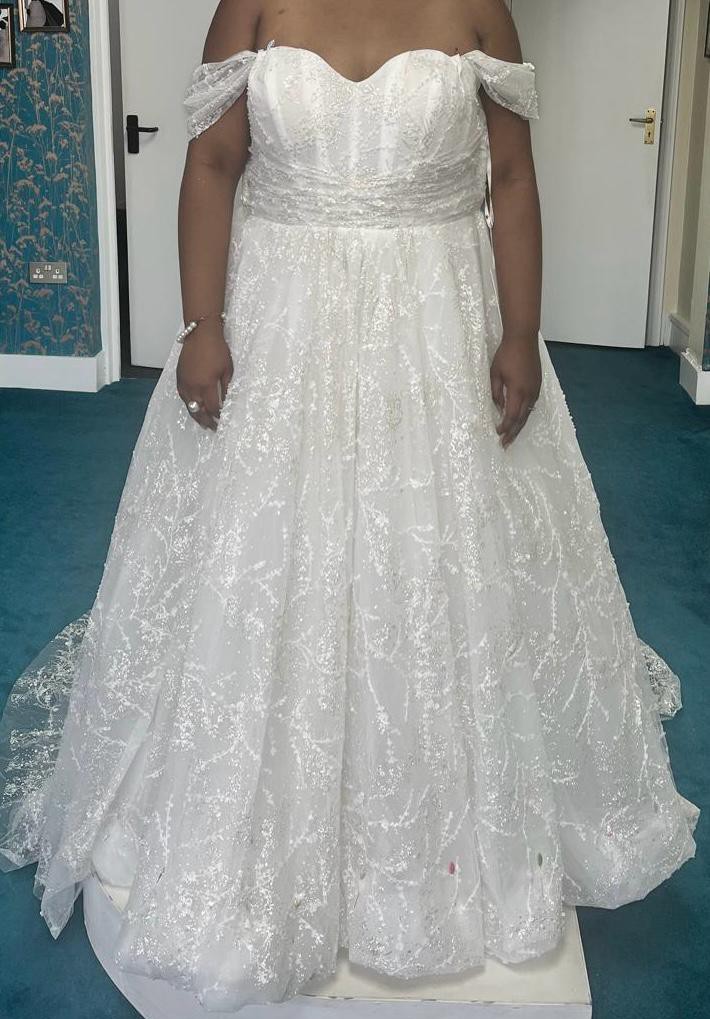 Now, I’m excited to pass this beautiful dress on to another bride who deserves to feel just as enchanting on her special day. It's a size 14, ready to create more cherished memories, and I genuinely hope this dress brings you as much joy as it brought me. This isn't just a dress; it's a piece of magic waiting to be experienced once again.